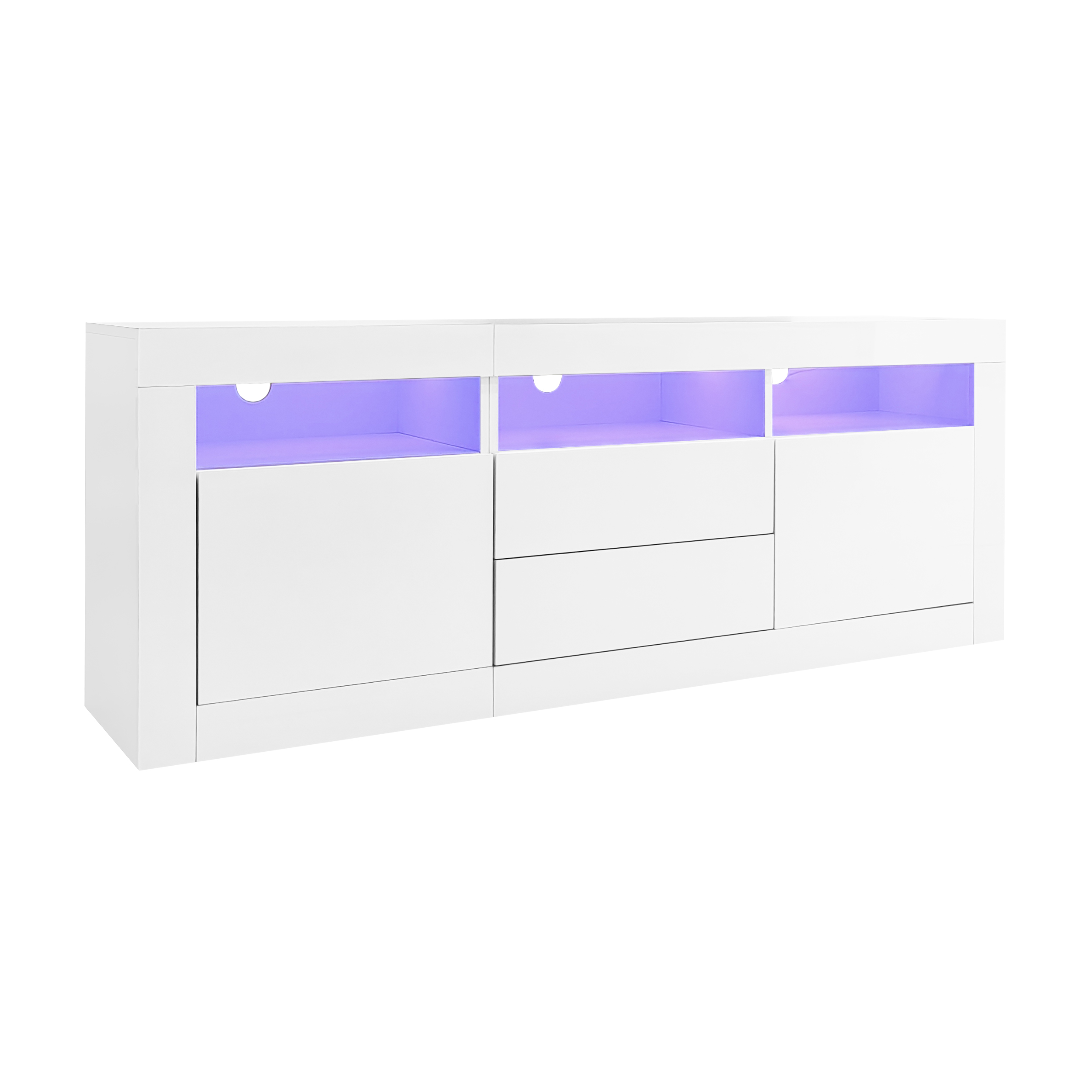| Libellé | Meuble TV blanc laqué 160x35x60 cm buffet avec 3 niches ouvertes, 2 portes et 2 tiroirs |