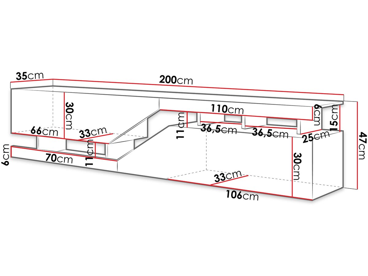 Épaisseur:16 mm.Matière:Bois.Couleur:Gris.Pied:Non.Tiroir:Non.Type de meuble:Meuble TV.ouverture:Sans poignets, Système d'ouverture push to open.Dimensions:200 x 46 x 35 cm.Hauteur:46 cm.Largeur:35 cm.Longueur:200 cm.Profondeur:35 cm.Poids:40 kg.Couleur (filtre):Gris.Matière:Panneau de particules.Matière (filtre):Bois.Longueur (Filtre):200 à 250 cm.LED:Sans éclairage.le + produit:Design tendance Robuste et durable.Colisage:1 colis : - 2,065 x 0,37 x 0,101 m, 40 kg.