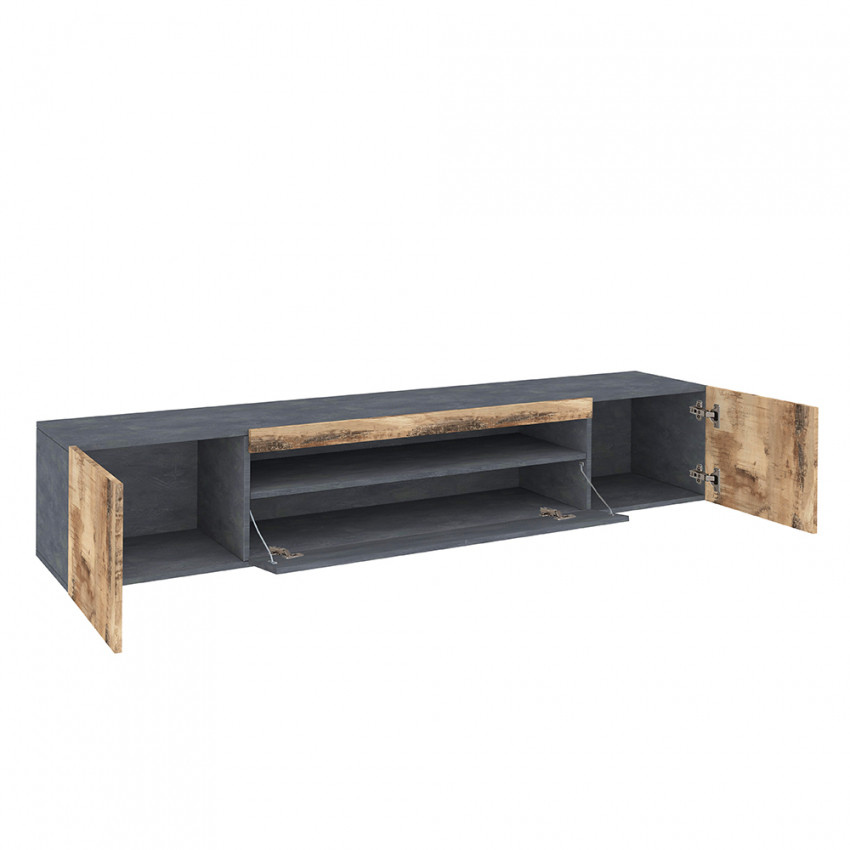 Meuble TV design 200cm 2 portes tiroir armoire rabattable Atlas