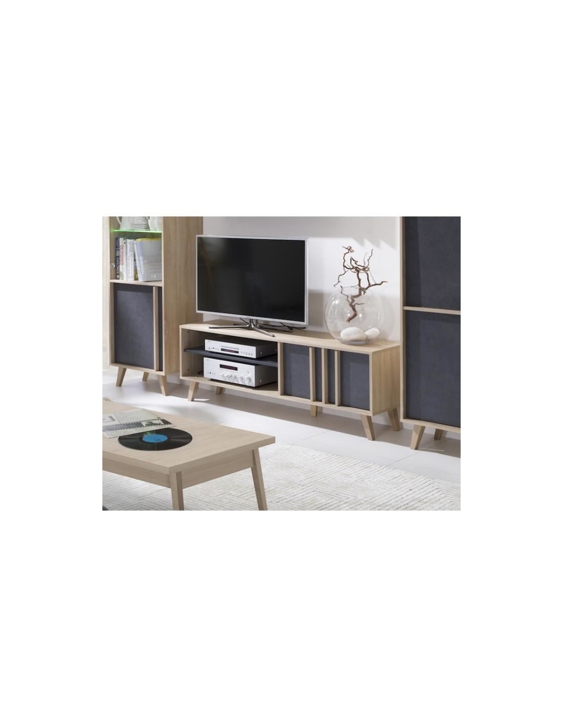 Meuble TV MALMO chêne clair et gris béton – 2 portes et 2 niches