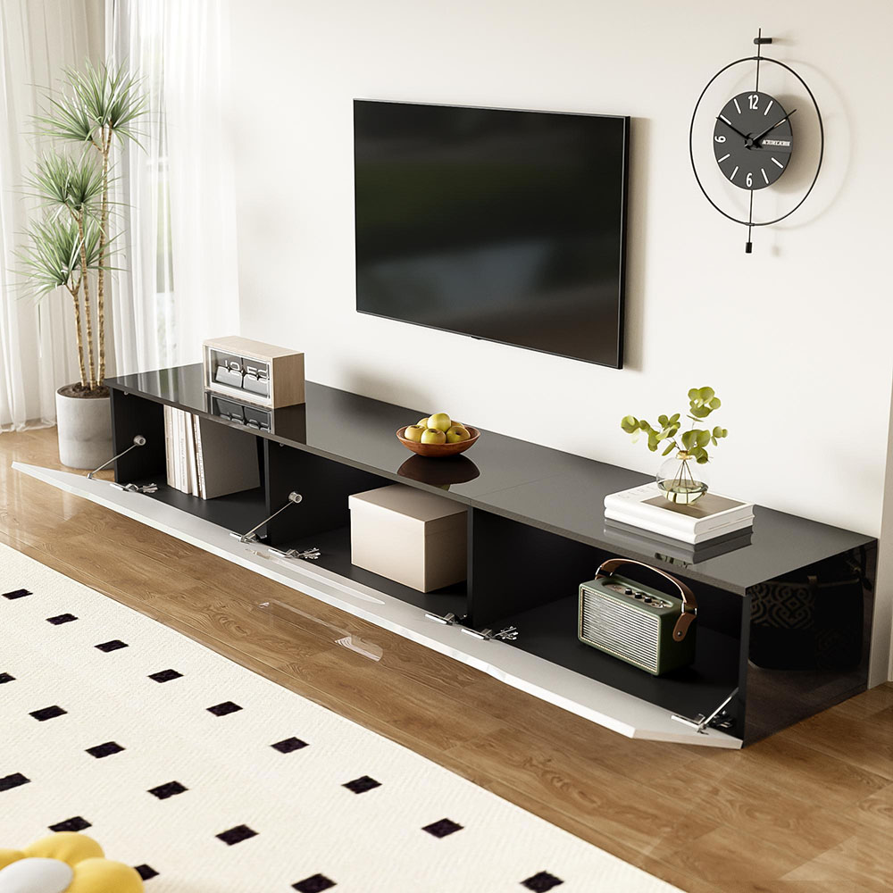 Design moderne - 180 × 35 × 30 cm, combinaison de brillant et de mat en noir et blanc, style intemporel.