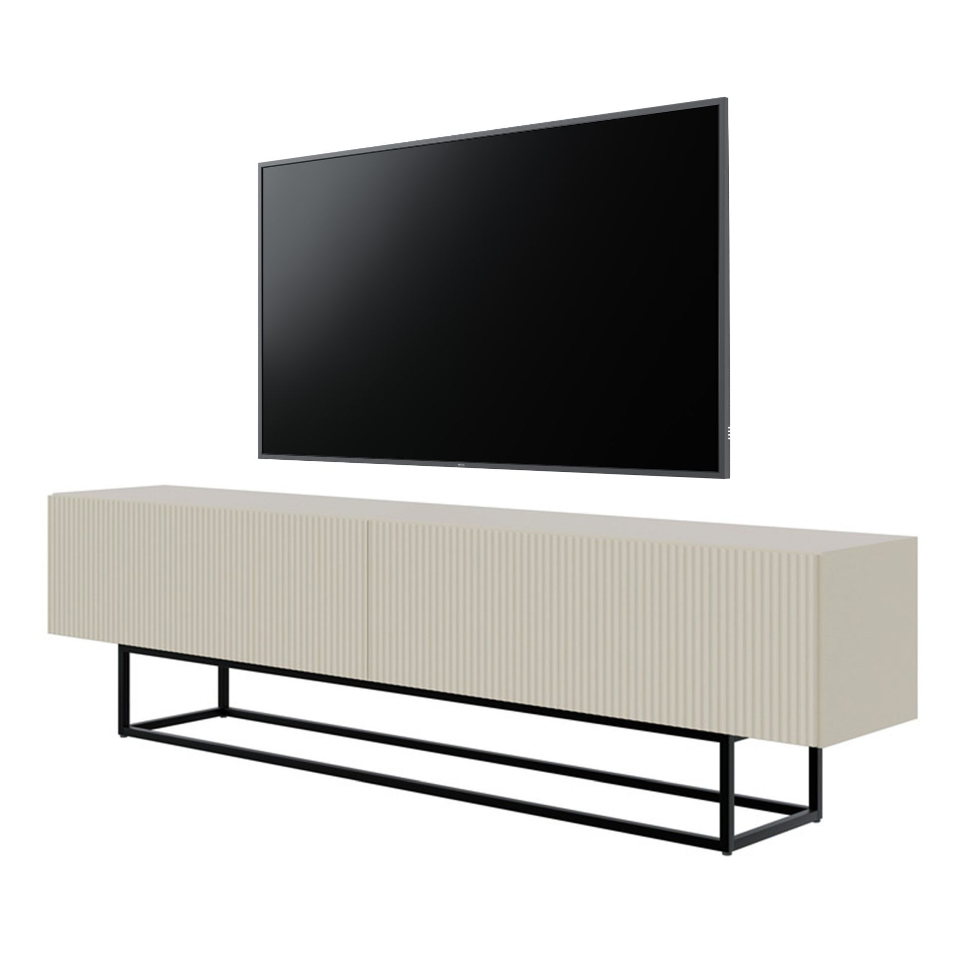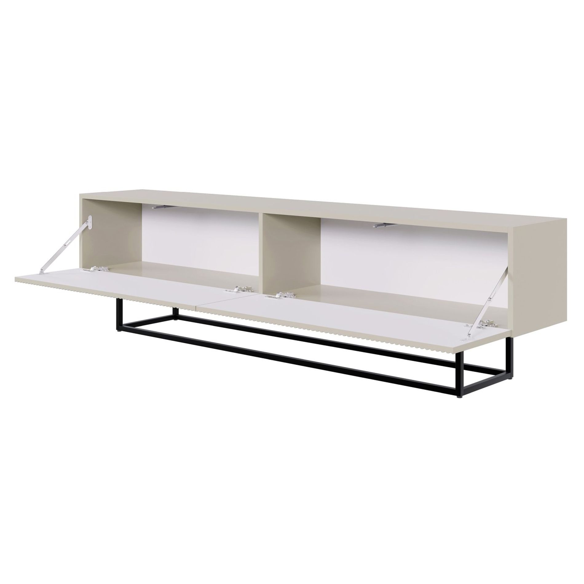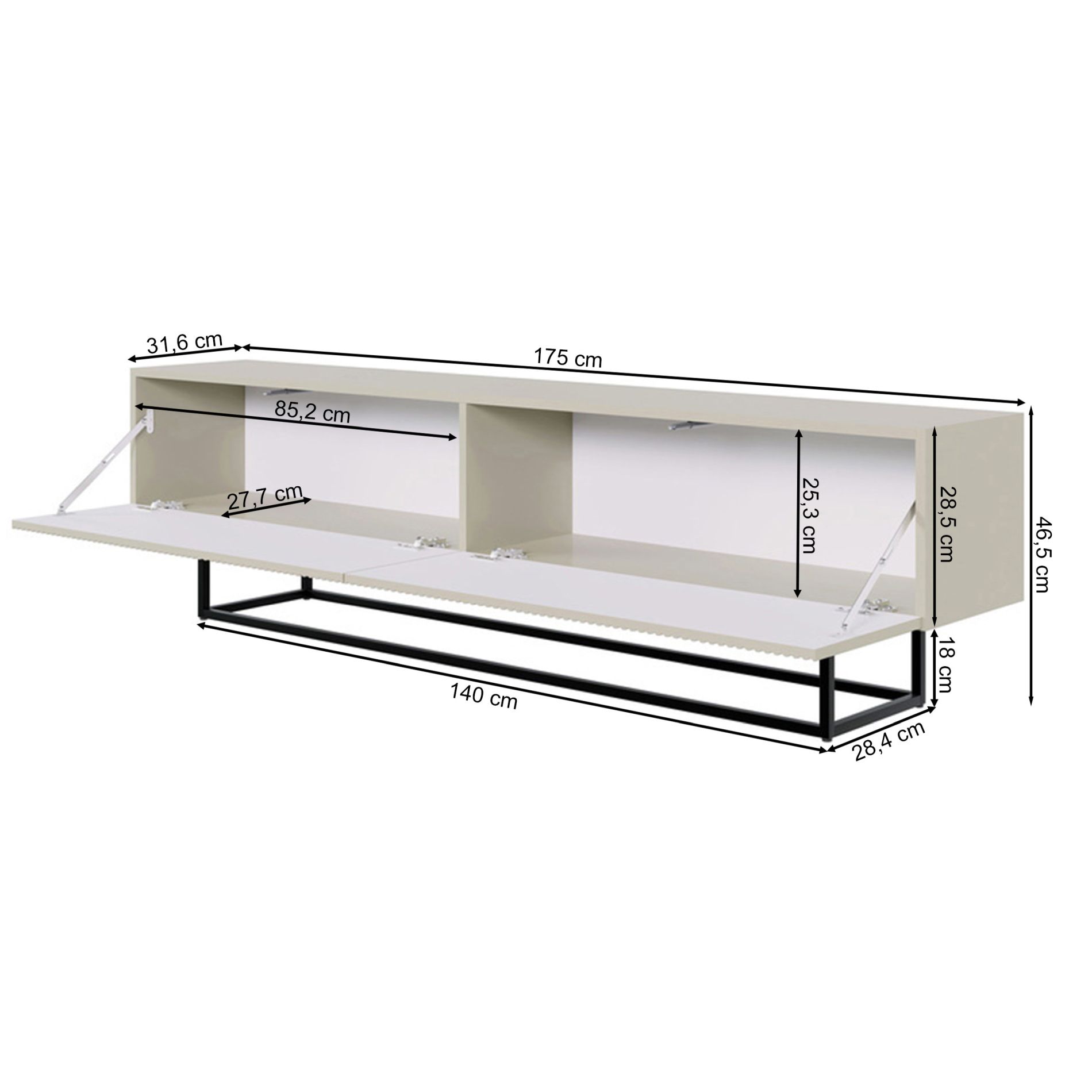 Les façades de meuble TV sont en MDF, les façades s'ouvrent vers le bas à l'aide de la méthode push-to-open.