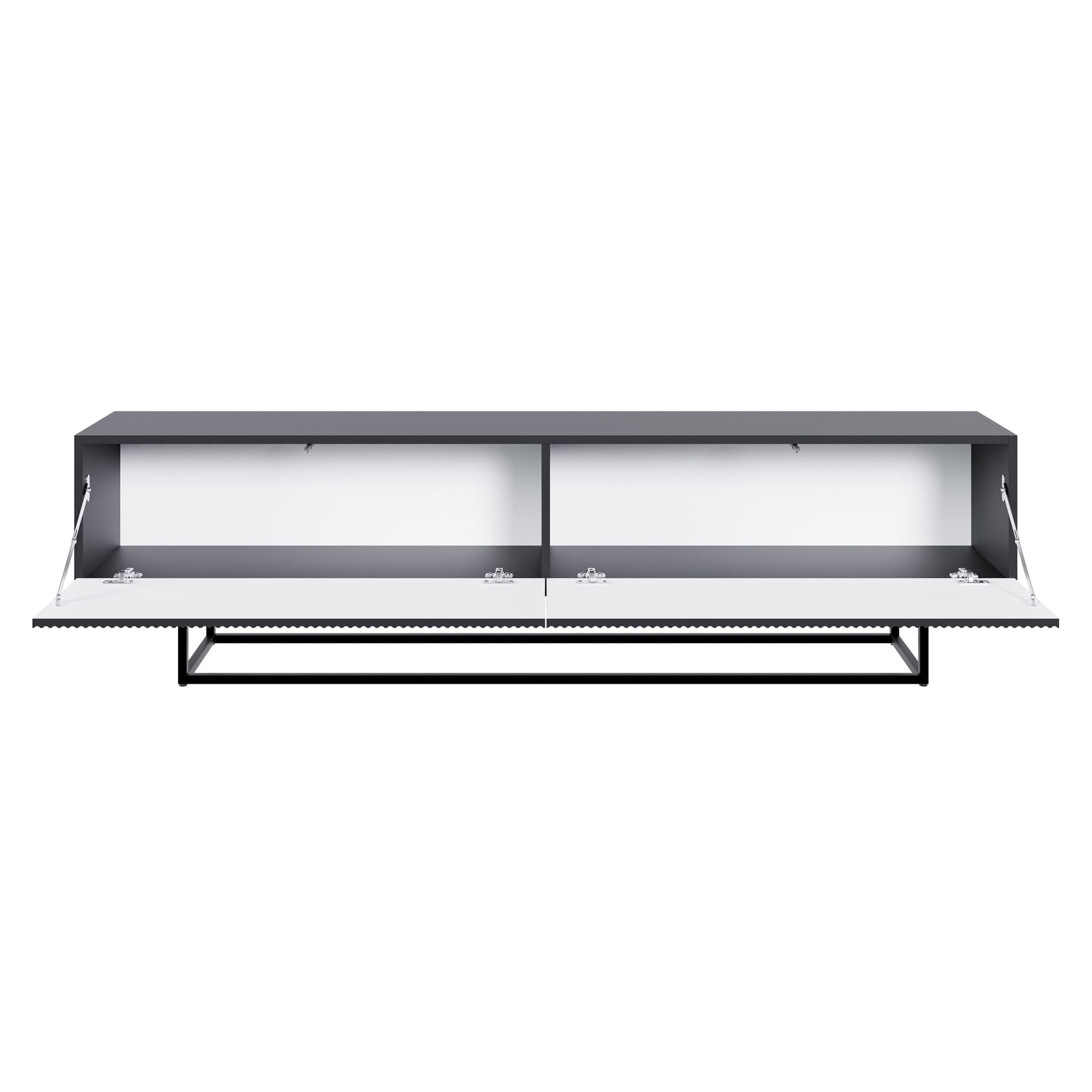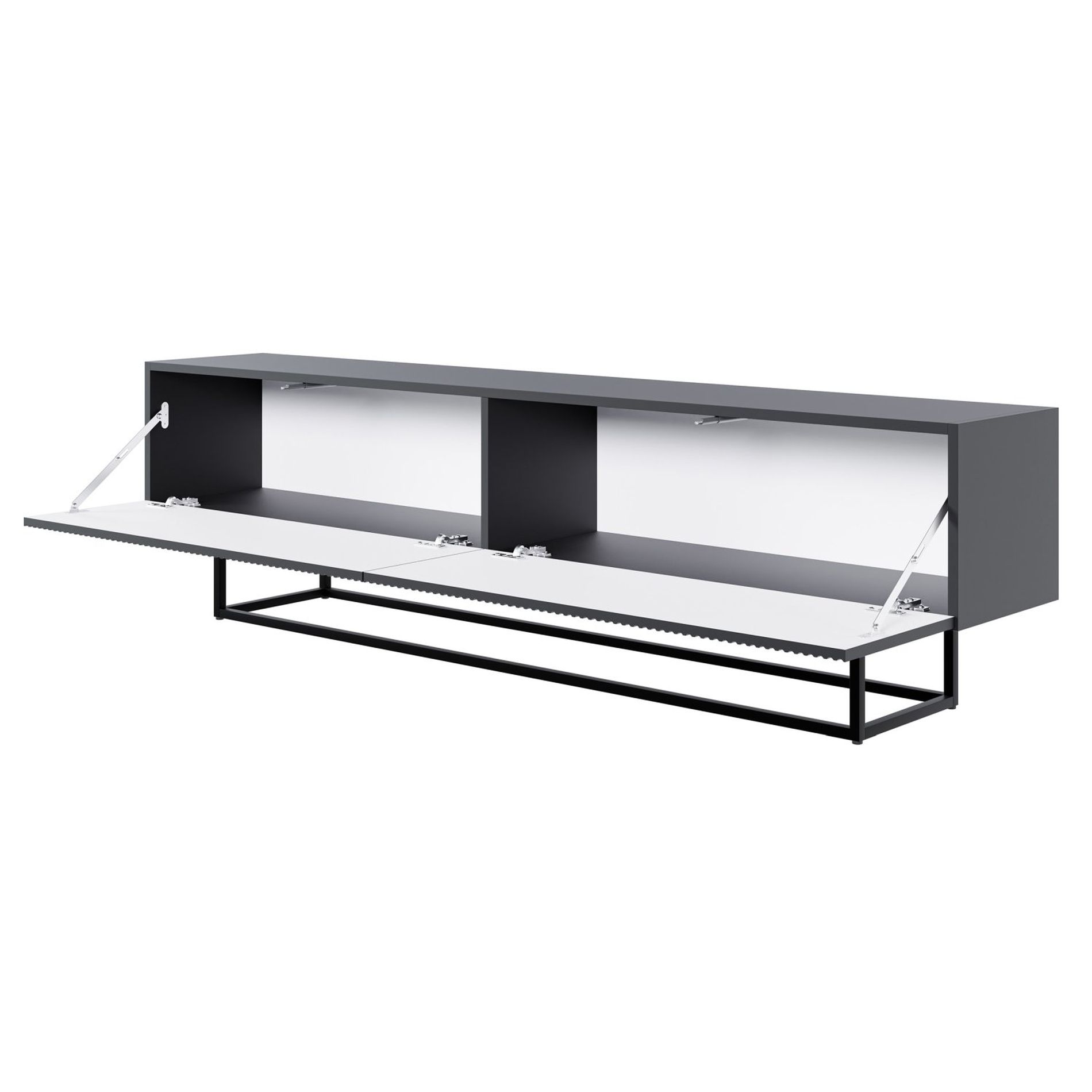Les façades de meuble TV sont en MDF, les façades s'ouvrent vers le bas à l'aide de la méthode push-to-open.