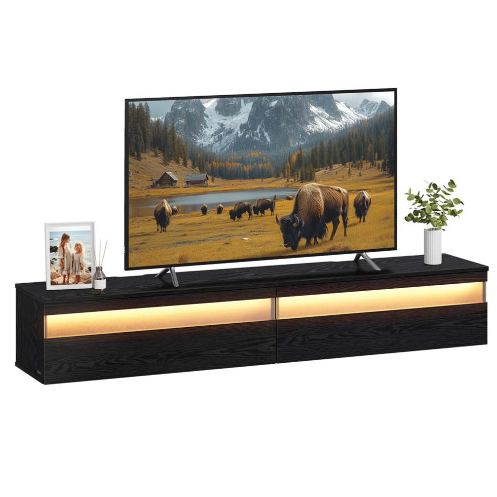 Ce meuble TV mural allie style moderne et fonctionnalité pratique. Avec ses lignes épurées et sa teinte noire élégante, il s’intègre aisément dans différents styles d’intérieur, tout en optimisant l’espace. Fixé au mur, il permet non seulement de gagner de la place mais aussi de faciliter le nettoyage du sol.