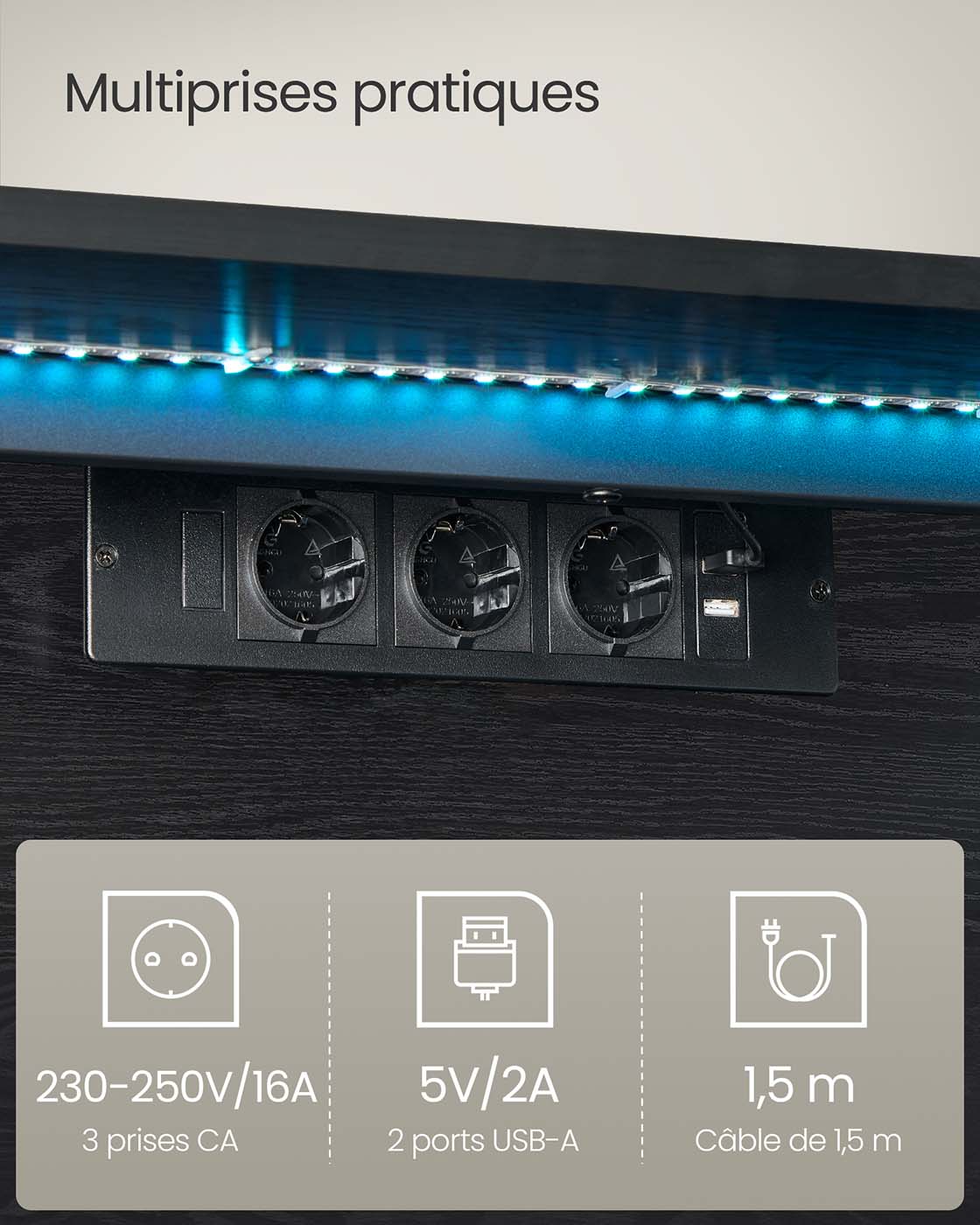 Pratique, il intègre 3 prises CA et 2 prises USB-A, idéales pour brancher téléviseur, enceintes, console de jeu ou encore éclairage, sans avoir à chercher de multiprise supplémentaire.