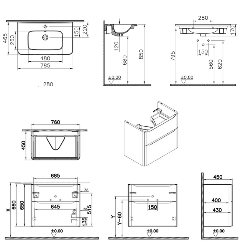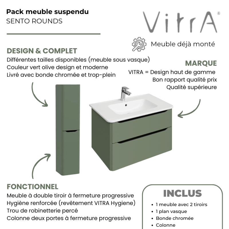 | Libellé | Meuble vasque suspendu VitrA Sento Round 80cm Vert mat + Colonne version gauche |