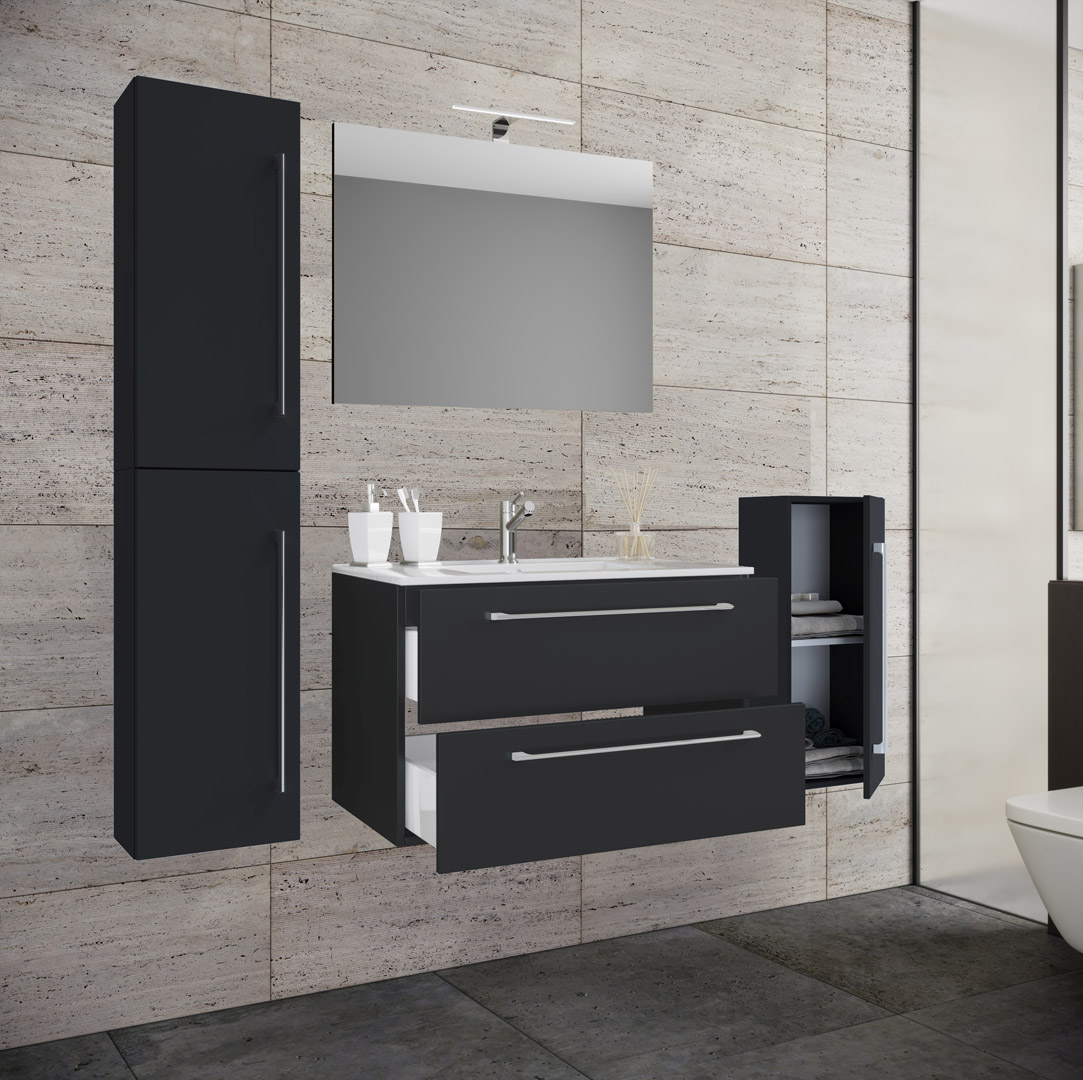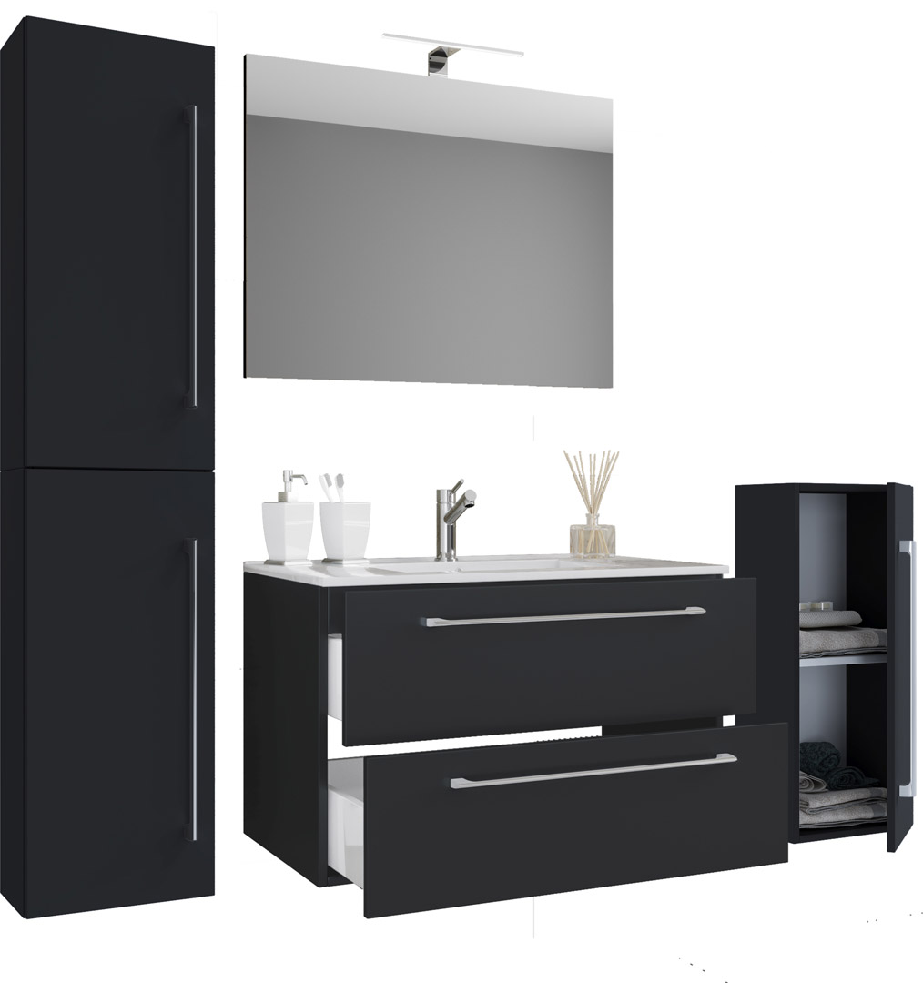 Ambiance de bain Badino A 60 cm, miroir noir est une ambiance de bain de couleur noire qui apporte à la fois style et fonctionnalité à votre maison. Environnement de bain Badino A 60 cm, miroir noir. 1 meuble bas/moyen/haut + 1 miroir sans lumière + 1 vasque sans robinet, 2 tiroirs, 3 portes 60 cm. A l'intérieur : 6 compartiments, 2 tiroirs. Miroir : 59x60 Meuble midi : 76x33x22 Meuble haut : 152x33x22 Meuble bas : 51x60x46. Environnement de baignade complet. Environnement de salle de bain au design élégant et moderne. La solution parfaite pour un environnement de salle de bain élégant et complet. Ce produit est créé avec un souci du détail, ce qui garantit à la fois un attrait esthétique et une grande durabilité. Il est conçu dans un souci à la fois de fonctionnalité et de style, ce qui en fait le choix parfait pour n’importe quelle pièce de votre maison. Les matériaux utilisés sont de haute qualité, ce qui confère au produit une longue durée de vie et lui permet de résister à une utilisation quotidienne. Que ce soit pour le rangement ou comme ajout décoratif, ce produit rehaussera votre décor et apportera plus de confort et d'élégance à votre maison.