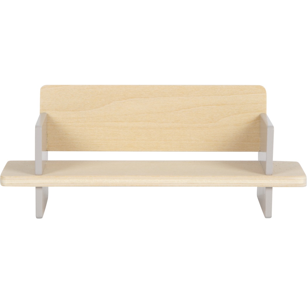 Mobilier en bois miniature pour maison de poupée.