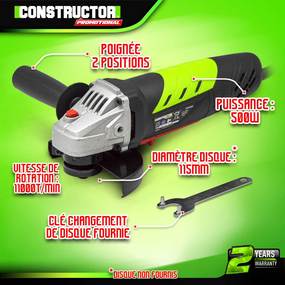 | Libellé | Meuleuse d'angle 500W - 115m - 11000t/min |