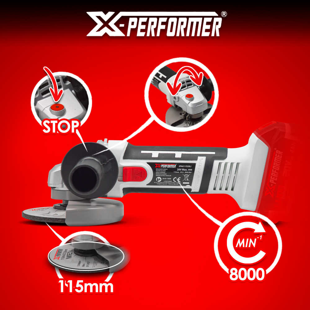 Meuleuse d'angle sans fil 20V - 115mm avec batterie 2Ah - X-Performer