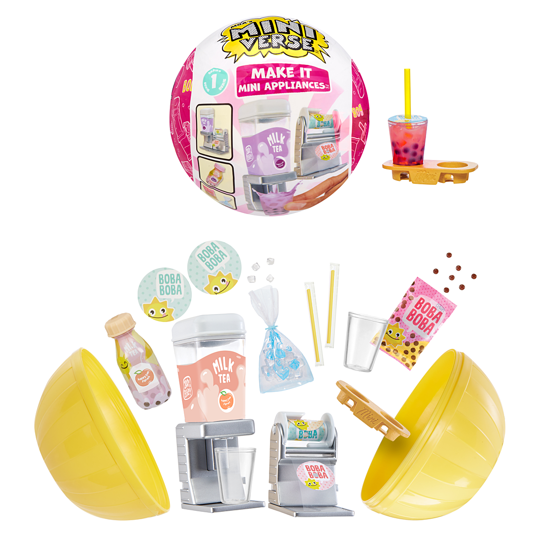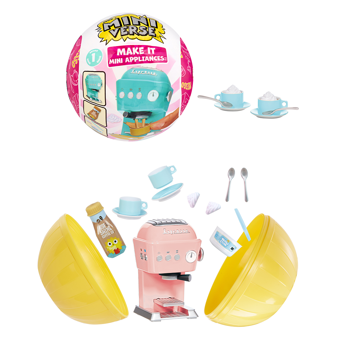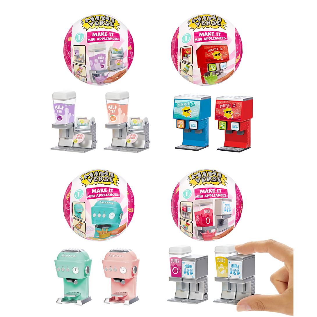 Mini jouets...grandes surprises ! Déballez vos aliments préférés au format mini. La différence entre Miniverse et les autres ?? Fabriquez vous-même votre propre plat ou boisson. Mais pour faire de la bonne cuisine, il faut aussi du bon matériel!! À l’échelle Miniverse??!! Oui c’est possible! Avec la gamme Mini Applicances, vous allez être parfaitement équipé pour faire les meilleurs boissons chaudes et froides du quartier!