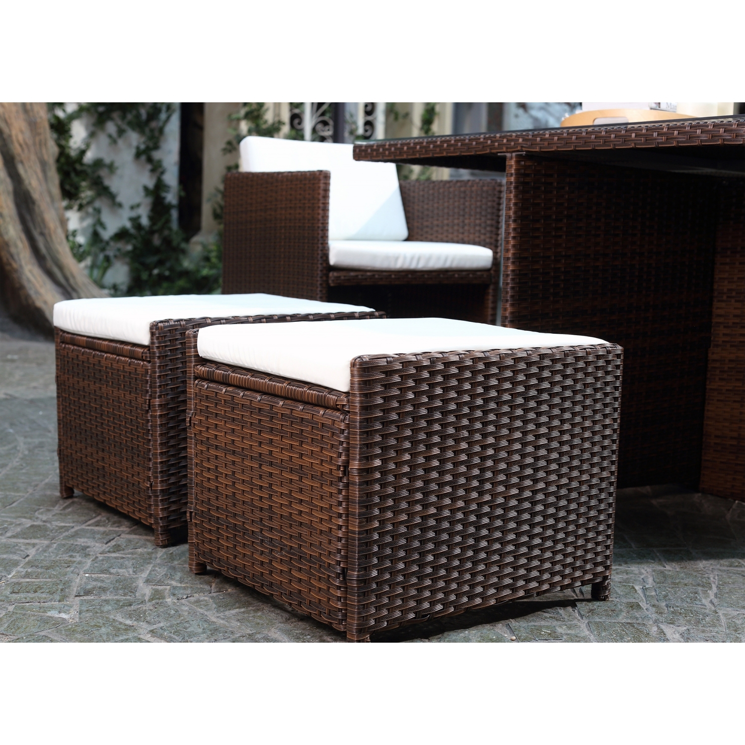 • Salon de jardin : Nettoyez au jet d'eau. Les coussins sont lavables en machine à 40°C, essorage doux.