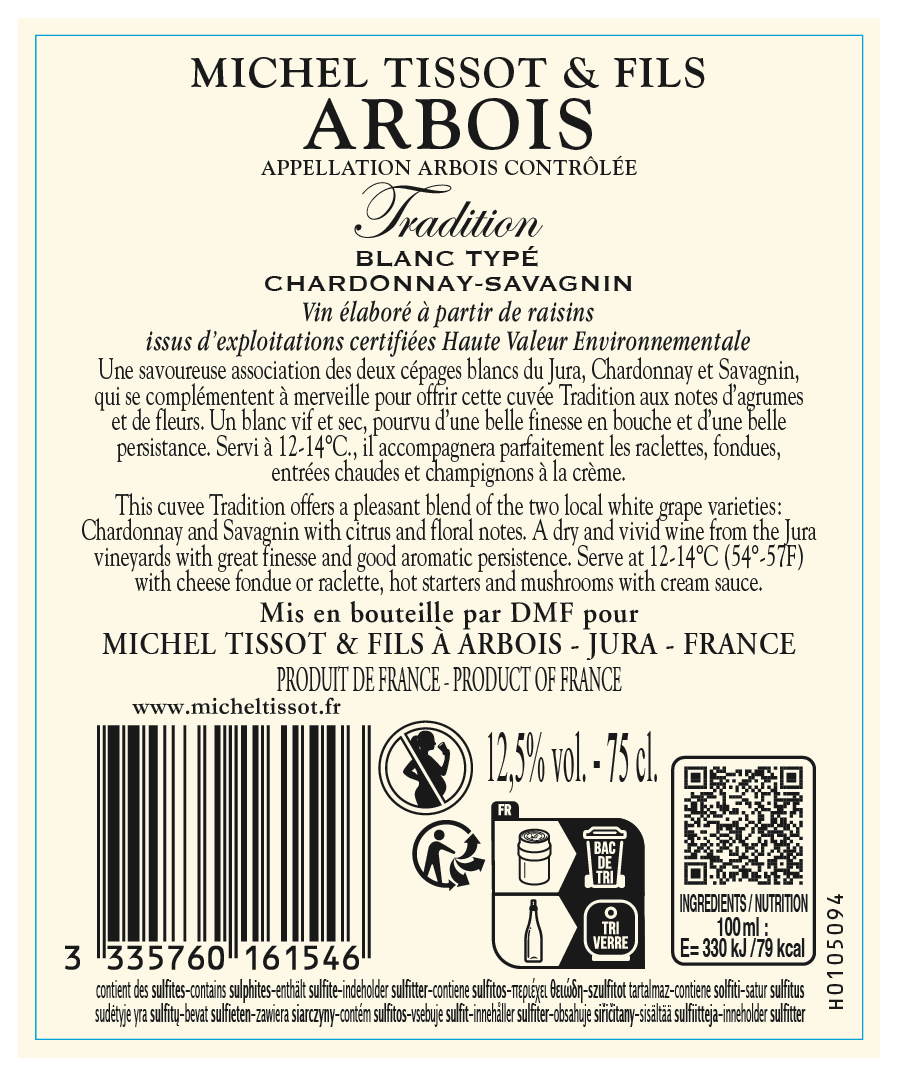 | Libellé | Michel Tissot & Fils Chardonnay-Savagnin - Arbois AOP - Blanc Sec - 75 cl |