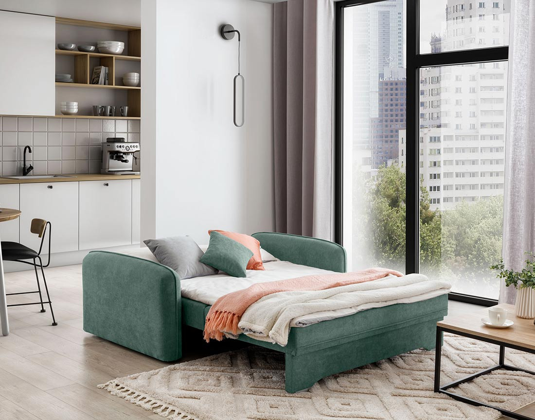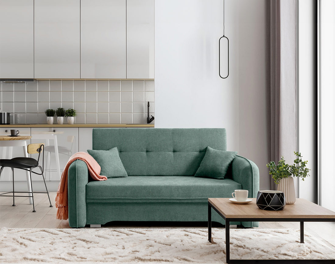 Avec son système convertible pratique, il se transforme rapidement en un lit douillet de 196 x 125 cm, idéal pour accueillir des invités. Son mécanisme de rabat est simple et intuitif. Sous son assise, Michelle cache un coffre de rangement spacieux de 66 x 132 x 19 cm. Ce compartiment discret est parfait pour ranger vos oreillers, plaids ou autres accessoires du quotidien. Facile d’accès, le coffre permet une optimisation intelligente de l’espace. Le rembourrage en mousse haute densité utilisé pour l’assise et le dossier garantit un confort parfait. Les ressorts ondulés apportent un soutien supplémentaire. Nous vous parlions de son côté esthétique, mais Michelle est aussi super pratique ! Fabriqué en Europe, ce canapé incarne un savoir-faire de qualité. Sa structure en bois massif et panneaux