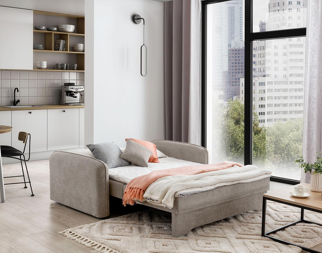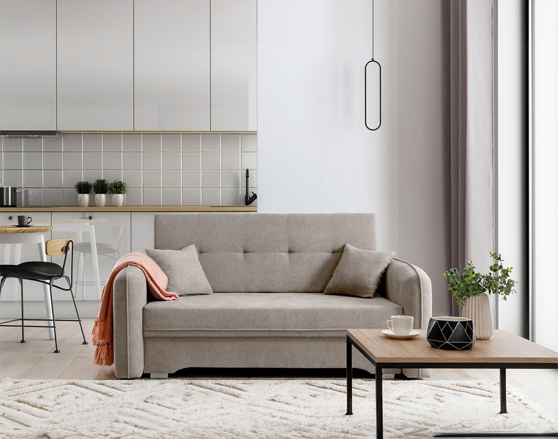 Avec son système convertible pratique, il se transforme rapidement en un lit douillet de 196 x 125 cm, idéal pour accueillir des invités. Son mécanisme de rabat est simple et intuitif. Sous son assise, Michelle cache un coffre de rangement spacieux de 66 x 132 x 19 cm. Ce compartiment discret est parfait pour ranger vos oreillers, plaids ou autres accessoires du quotidien. Facile d’accès, le coffre permet une optimisation intelligente de l’espace. Le rembourrage en mousse haute densité utilisé pour l’assise et le dossier garantit un confort parfait. Les ressorts ondulés apportent un soutien supplémentaire. Nous vous parlions de son côté esthétique, mais Michelle est aussi super pratique ! Fabriqué en Europe, ce canapé incarne un savoir-faire de qualité. Sa structure en bois massif et panneaux