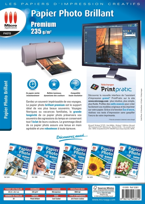 | Libellé | Micro Application 5381 papier photos A4 Blanc |