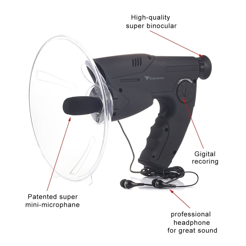 Avec ce dispositif électronique d'enregistrement numérique et d'écoute, vous pouvez voir avant d'enregistrer. En effet, ce dispositif d'écoute possède un système optique puissant. Il zoome jusqu'à 8 fois les sujets situés dans son viseur. Le dispositif d'écoute possède également un super mini-micro qui permet d'enregistrer les sons aussi clairement qu'on les entend. La qualité du son est optimisée. Un casque professionnel est également disponible. Vous pouvez le placer sur le dispositif d'écoute et l'utiliser lors de vos enregistrements.