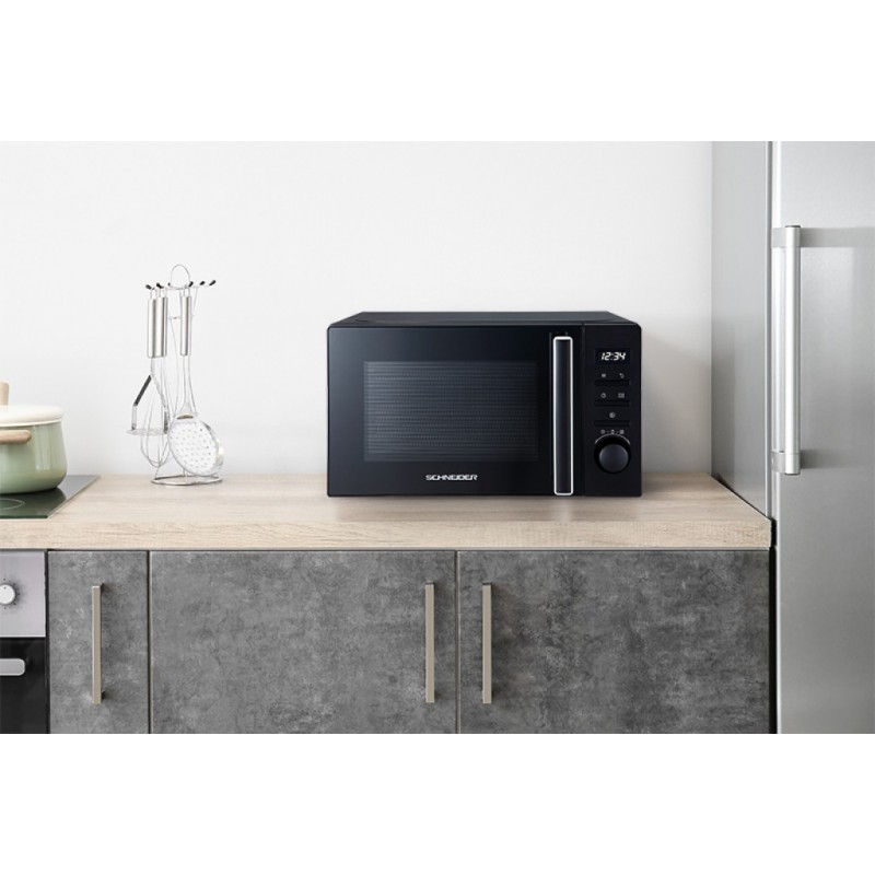 Le Schneider SCMW20SD est un micro-ondes digital compact et moderne, conçu pour répondre aux besoins du quotidien avec efficacité et simplicité. Avec une capacité de 20 litres et une puissance de 700 W, il est idéal pour réchauffer, cuire et décongeler tous vos plats en quelques instants.