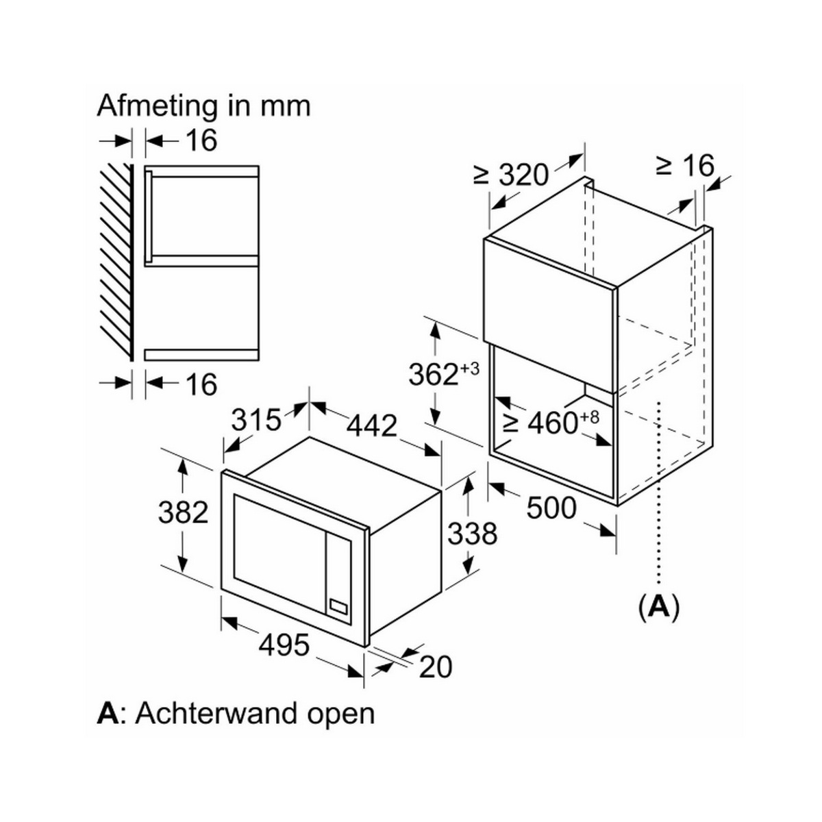 Un appareil encastrable pour armoire supérieure (50cm de large -min. 30cm de profondeur).