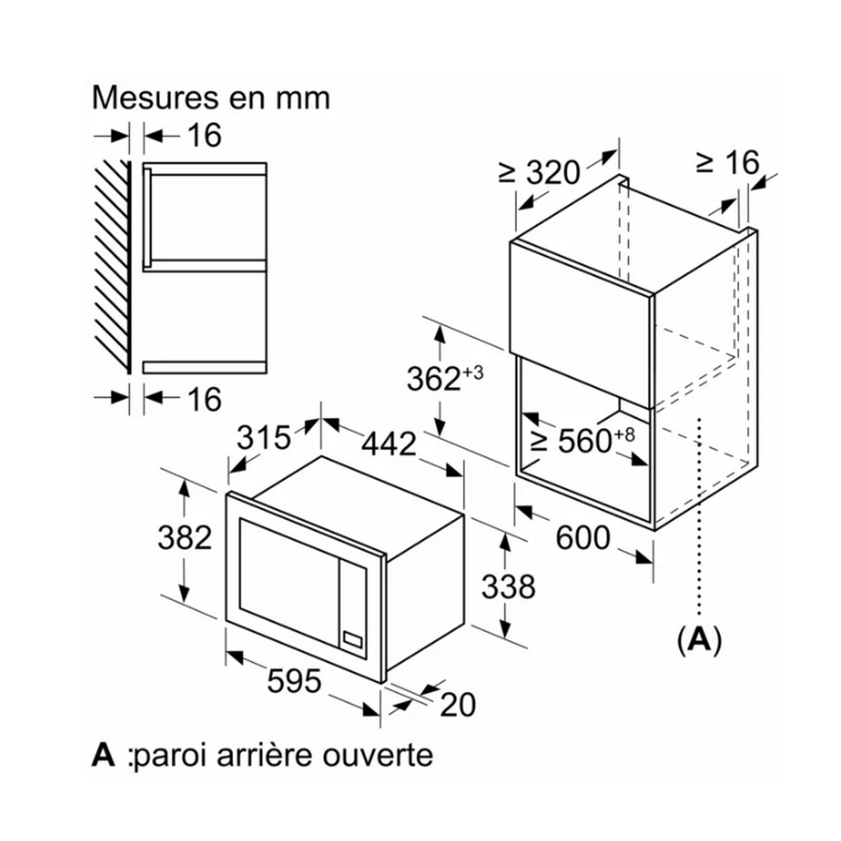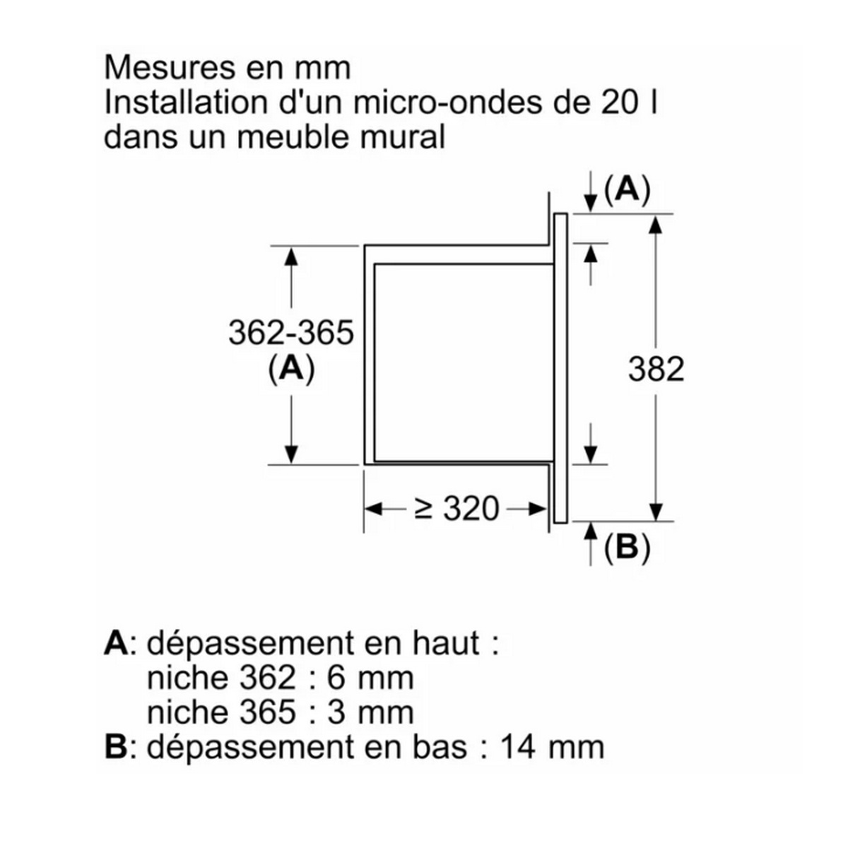 Hauteur minimum de la niche d'encastrement : 362 mm.