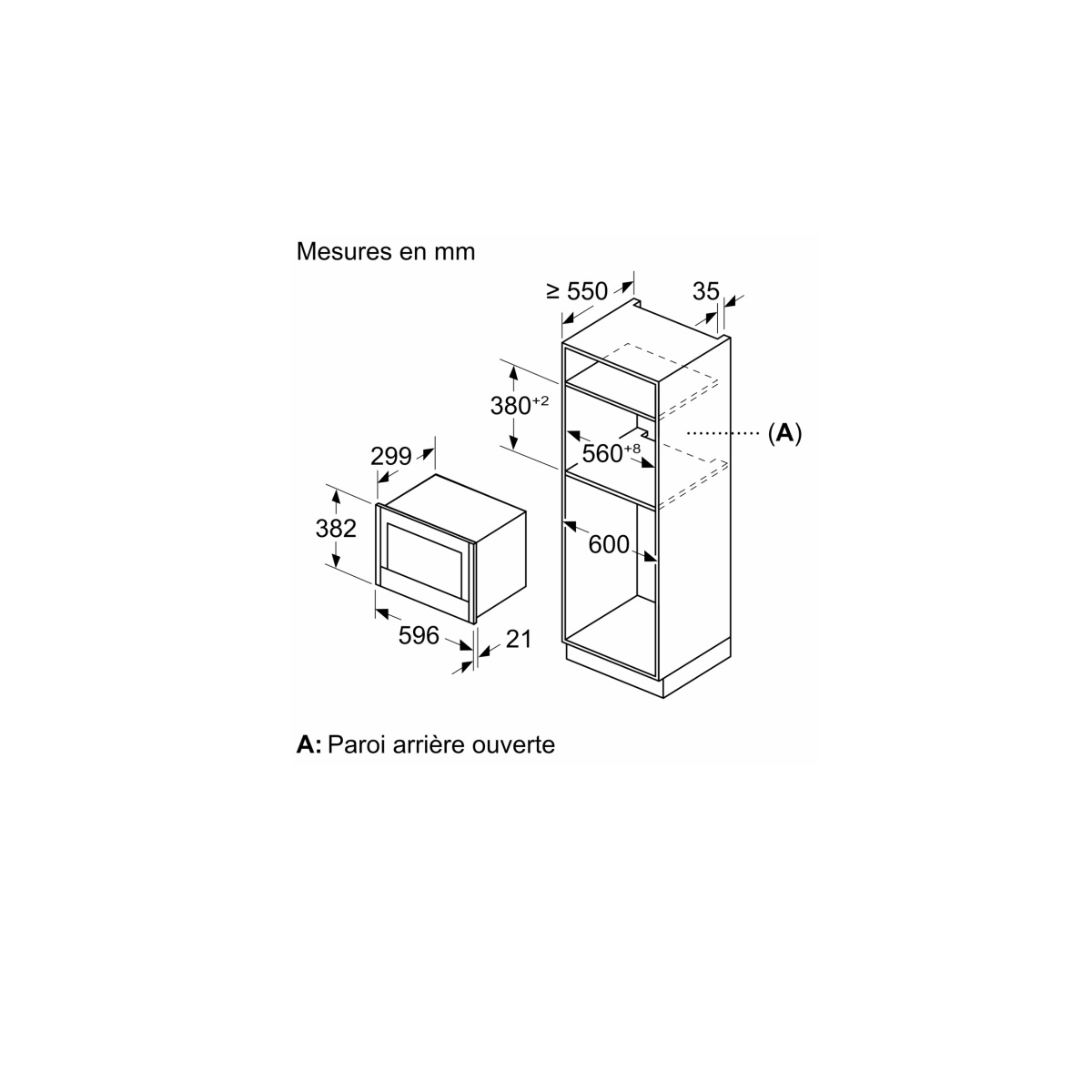 Largeur minimum de la niche d'encastrement : 560 mm.