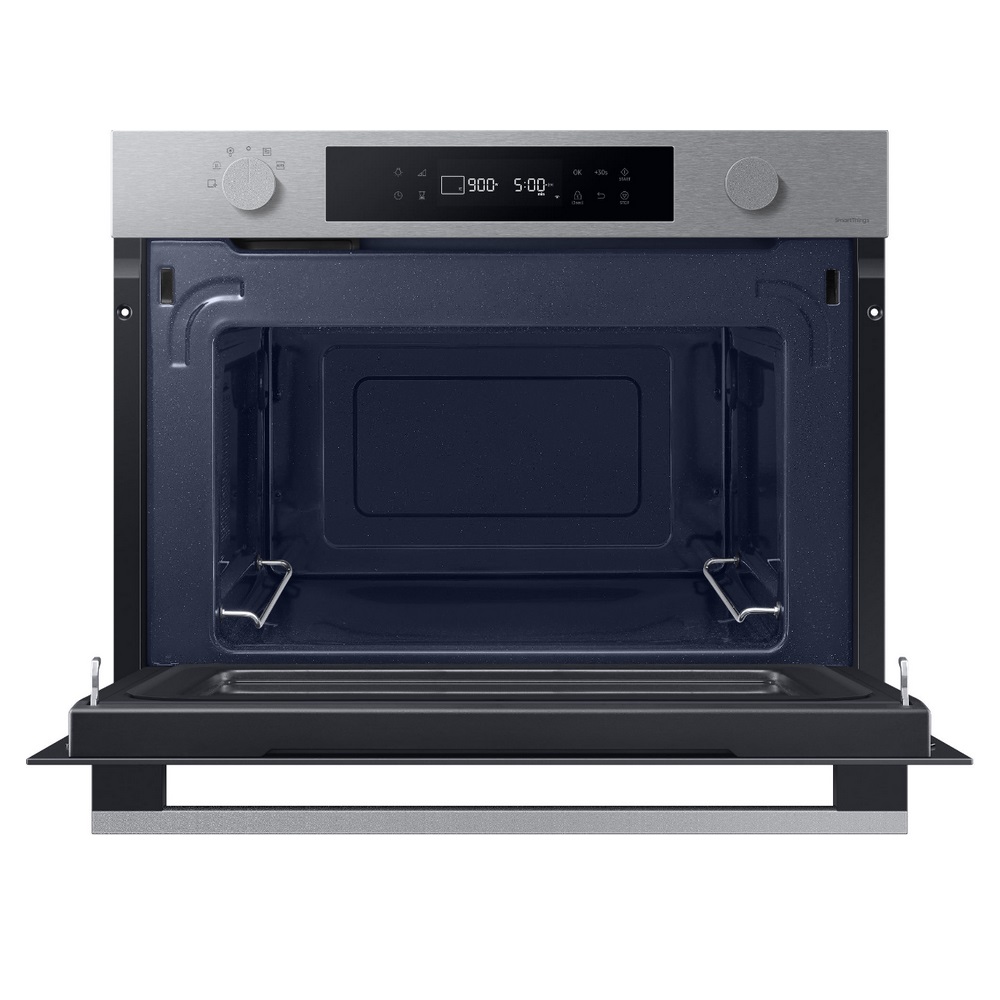 Profitez d'un micro-ondes intégré compact grande capacité pour une totale liberté. Sa capacité XXL de 50L permet de réchauffer aisément tous vos plats volumineux. Type de produit: Micro-onde combiné Type d'ampoule: Halogène, Puissance de l'ampoule: 40 W Charge connectée: 1650 W Connectivité Wi-Fi Commandes vocales (Google, Alexa)/ (Bixby) via SmartThings 20 fonctions automatiques Cavité céramique émail Nettoyage Steam Clean Largeur: 595 mm Profondeur: 570 mm Hauteur: 456 mm