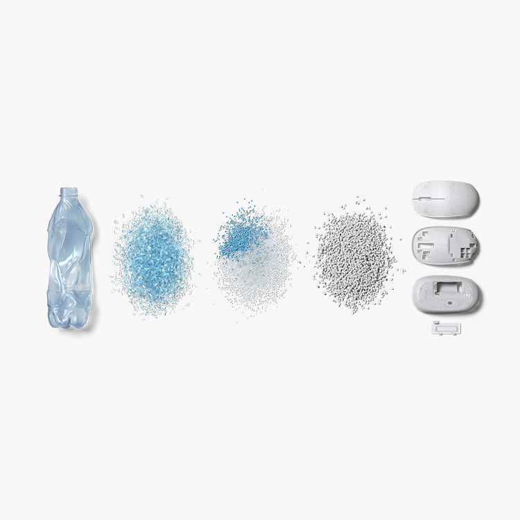 La souris Microsoft Ocean Plastic Mouse est une souris pour ordinateur fabriquée avec des déchets plastiques issus des mers, des océans et des rivières. Puis, les déchets sont broyés, nettoyés et transformés en granules de plastique recyclé. Connectez-vous sans fil à votre ordinateur portable Windows via Bluetooth® 5.0 LE.