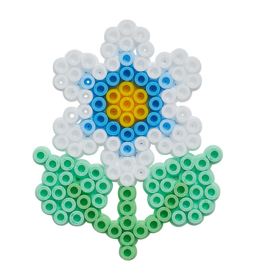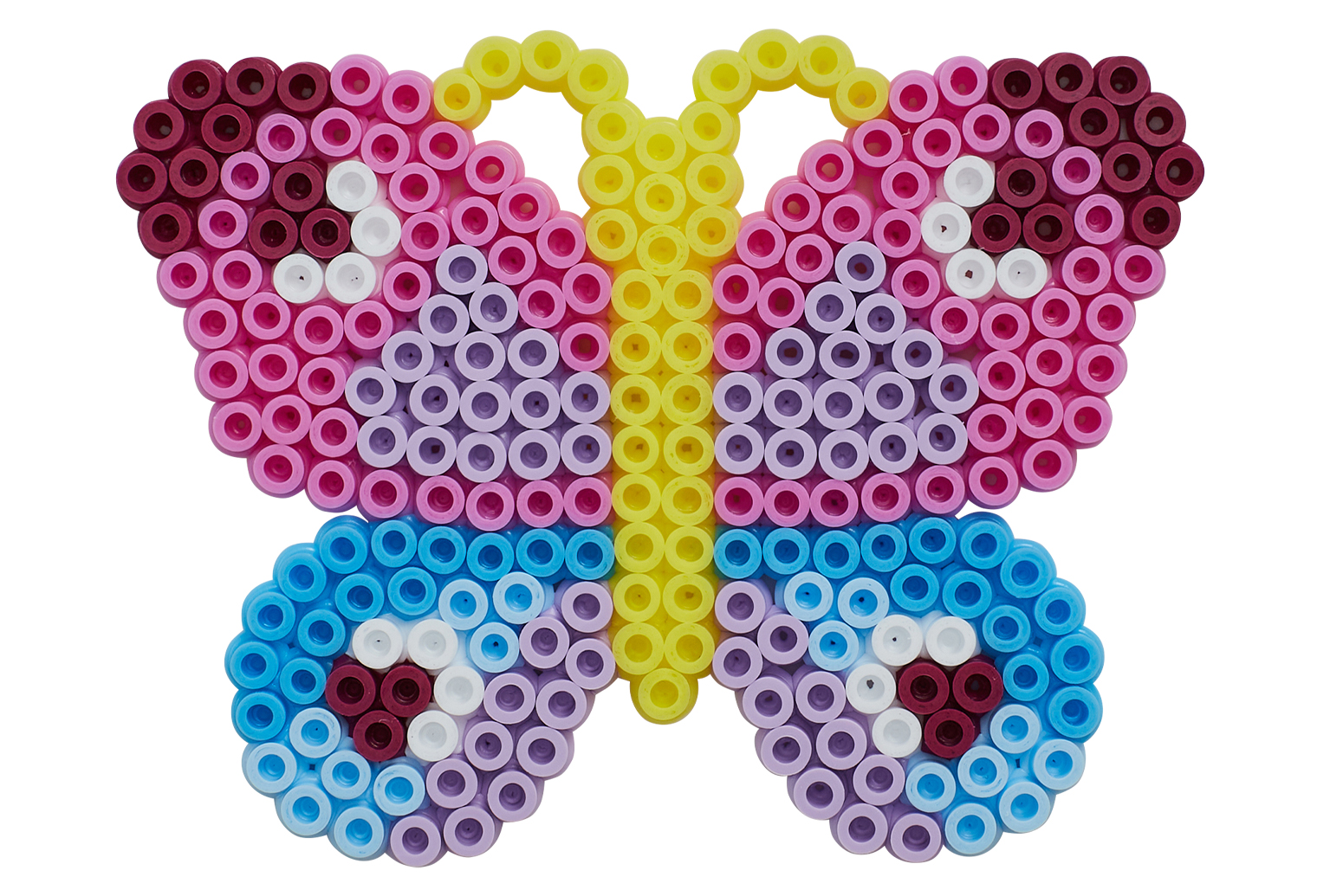 Ce blister contient environ 1.100 perles, 2 plaques perforées : Papillon n° 298 et petite fleur n° 327, instructions et papier à repasser.