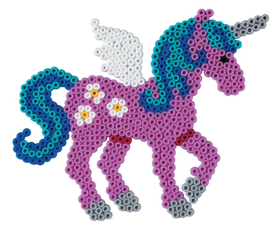 Découvrez plus de 2000 perles HAMA Midi et une plaque licorne (réf. 315TR) pour créer un monde magique ! Pour vous aider, retrouvez une feuille de modèles en couleurs, des instructions et du papier à repasser. Place à l'imagination ! Pour jouer, rien de plus simple : 1) Poser les perles sur la plaque. 2) Couvrir le motif avec le papier à repasser puis repasser au fer très chaud sans vapeur. Le repassage est laissé aux soins des adultes. 3) Enlever le motif obtenu de la plaque de base qui est réutilisable. Les jeux Hama sont pensés pour le développement intellectuel et moteur des enfants. Au cours des premières années de vie, les petits apprennent à reconnaître les couleurs, à saisir les objets, à distinguer les formes, à avoir une première idée des quantités, etc. C’est en relation avec ces années d’apprentissage que les produits Hama montrent leur force en tant que jouets pédagogiques. Guidés par leurs parents, les enfants s’amuseront à prendre confiance en eux. Des activités qui développent le partage, la dextérité et qui stimulent la curiosité ! Adapté pour les enfants de plus de 5 ans.