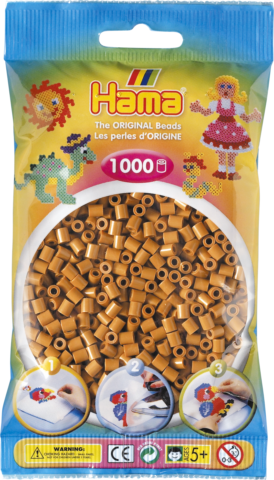 Plus besoin de trier les perles ! Retrouve dans ce sachet plus de 1000 perles midi HAMA couleur marron clair pour compléter tes créations. Pour jouer, rien de plus simple : 1) Poser les perles sur la plaque. 2) Couvrir le motif avec le papier à repasser puis repasser au fer très chaud sans vapeur. Le repassage est laissé aux soins des adultes. 3) Enlever le motif obtenu de la plaque de base qui est réutilisable. Les jeux Hama sont pensés pour le développement intellectuel et moteur des enfants. Au cours des premières années de vie, les petits apprennent à reconnaître les couleurs, à saisir les objets, à distinguer les formes, à avoir une première idée des quantités, etc. C’est en relation avec ces années d’apprentissage que les produits Hama montrent leur force en tant que jouets pédagogiques. Guidés par leurs parents, les enfants s’amuseront à prendre confiance en eux. Des activités qui développent le partage, la dextérité et qui stimulent la curiosité ! Adapté pour les enfants de plus de 5 ans.