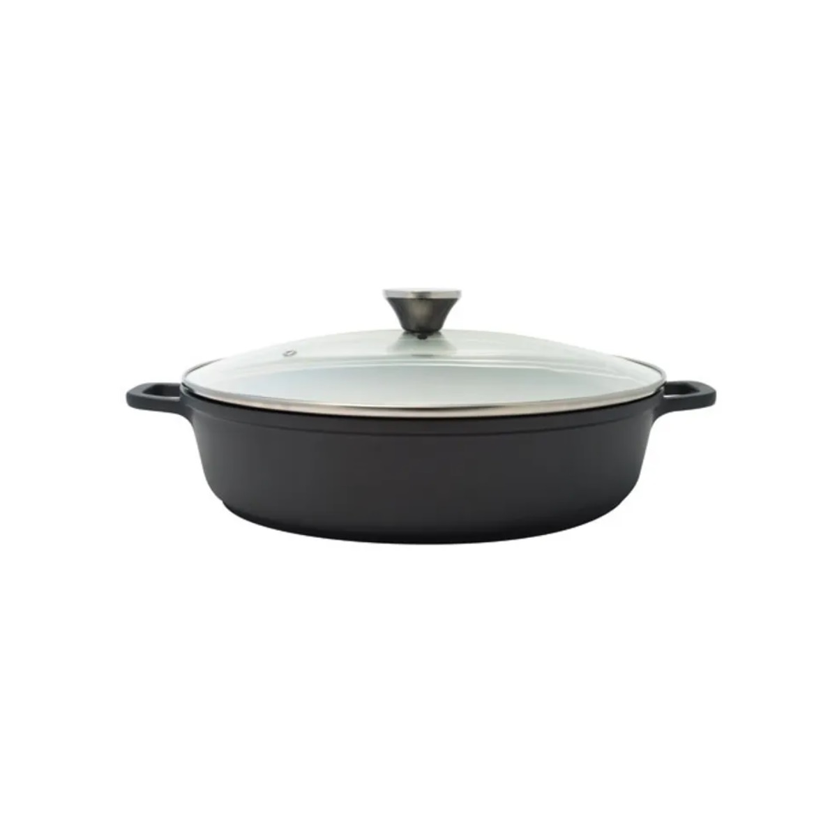Grands volumes - Article en fonte d'aluminium - Intérieur revetement anti adhérent 2 couches XYLAN PLUS de Withford - Extérieur coloris noir - Couvercle verre avec bouton inox, jonc inox -