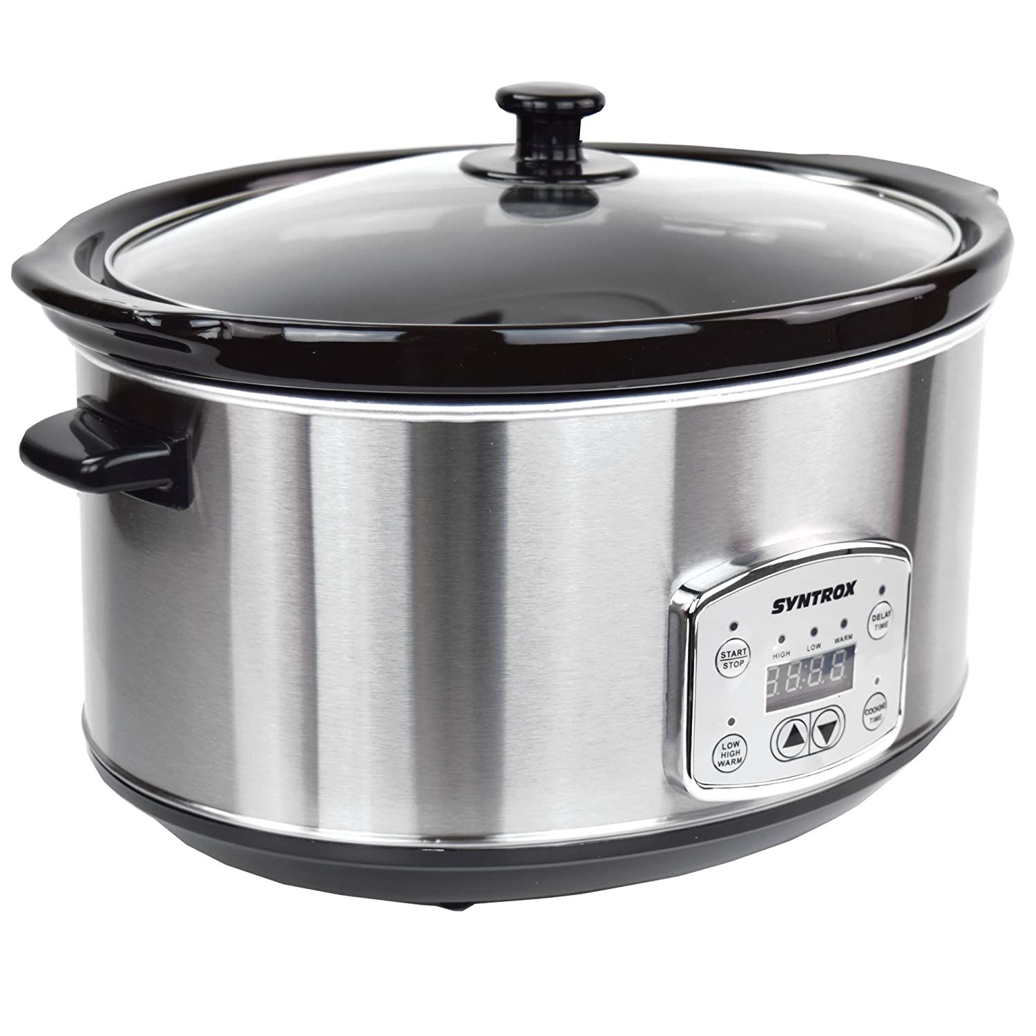 La mijoteuse idéale pour une cuisson saine et rapide Douce cuisson lente avec une conservation complète des nutriments Vous avez peu de temps pour cuisiner? Cela va changer, le Slowcooker (également appelé Crockpot) est la solution parfaite dans la cuisine. Vous donnez les ingrédients le matin et le soir, votre dîner parfait est servi. Pendant des décennies aux États-Unis, sans penser à aucun ménage, Cette forme de cuisson économe en énergie et rapide est de plus en plus acceptée par nous. Vous ne voudrez plus manquer cet appareil - sans que vous ayez à être là, vous pouvez faire cuire des soupes, des ragoûts, des plats de viande, même des desserts. et gâteau tout seul! Votre créativité est pratiquement illimitée. Slowcooker digital, 6,5 litres max. capacité Bol de service adapté au lave-vaisselle et au micro-ondes Couleur: acier inoxydable consommation maximale: 320 watts Temps de cuisson au choix - fonction de réchauffement - programmable - couvercle en verre - capacité de 6,5 litres - Pot intérieur en céramique, peut également être utilisé comme bol de service élégant - pieds antidérapants - accessoires allant au lave-vaisselle (bien sûr, l'appareil lui-même)