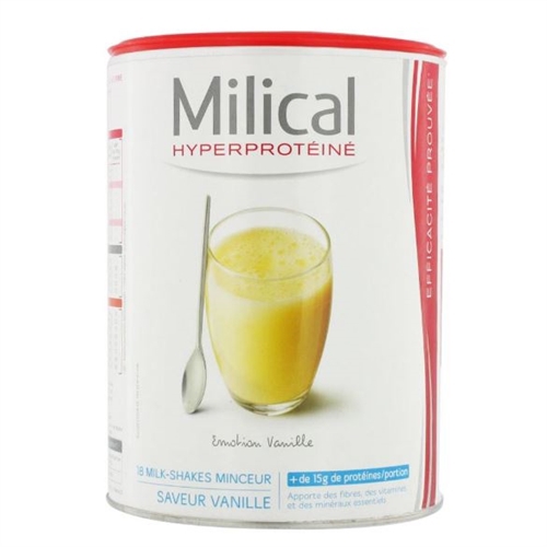 Le Milk Shake hyperprotéiné des laboratoires Milical est idéal pour des cure minceur de courte durée afin de compenser un excés, d'entretenir votre silhouette. L'alternance de phases courtes évite à l'organisme de s'habituer à la privation et d'entrer dans un processus de stockage une fois le régime terminé. Le Milk-shake Vanille Milical, votre atout minceur : - la gourmandise et le plaisir d'un vrai milk-shake vanille, les protéines en plus, - des protéines pour mincir plus facilement lors d'un régime hyperprotéiné qui permet de puiser directement dans la masse grasse, - des fibres pour faciliter votre confort de digestion au quotidien.