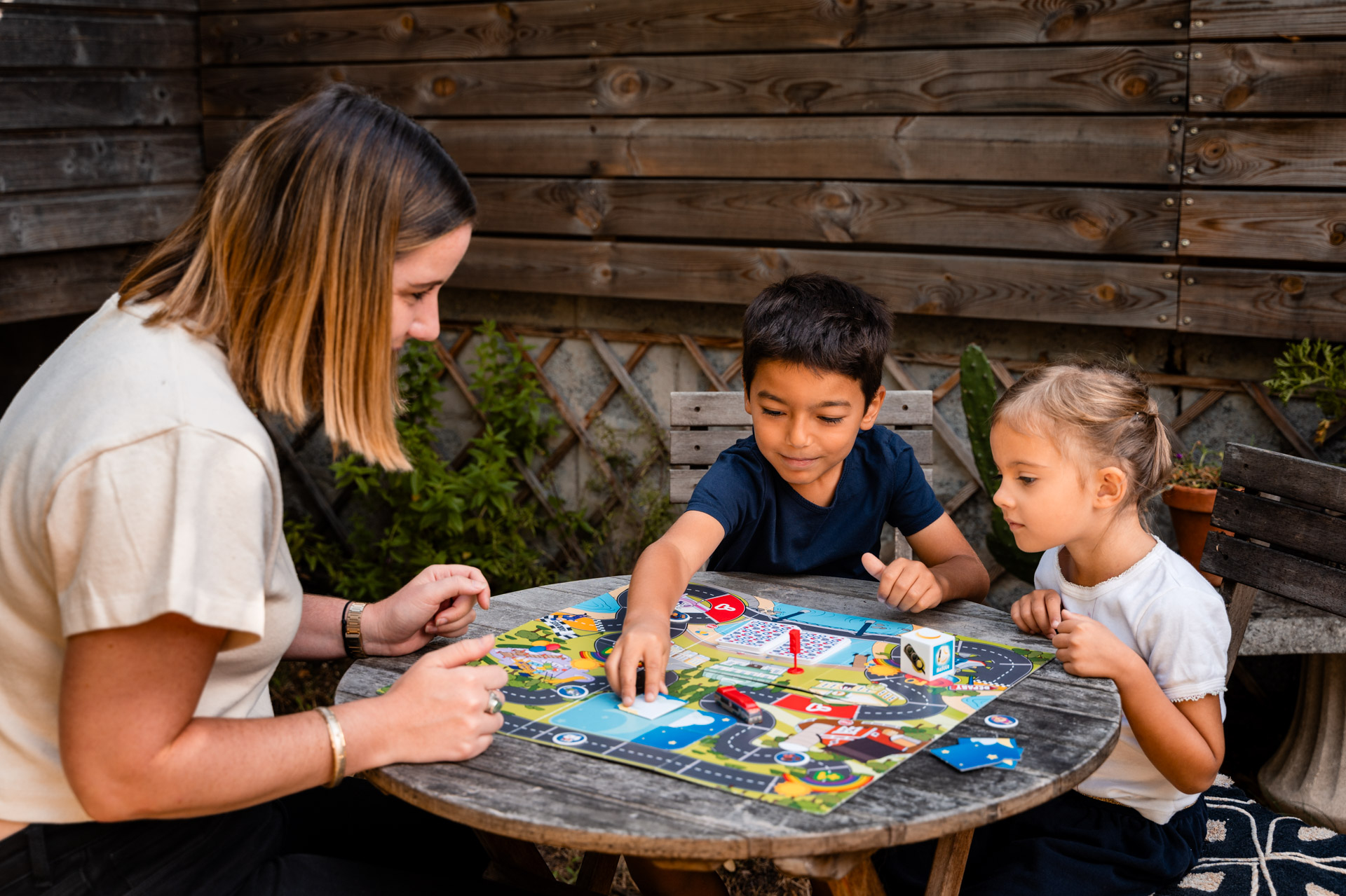 Aide la Pat Patrouille a sauver la Grande Vallée du Maire Hellinger avant que la nuit ne tombe ! Un jeu collaboratif pour initier les enfants aux jeux de société, apprendre à compter et se déplacer sur un plateau. À chaque tour, pioche une carte : si tu pioches une carte Étape, tu peux avancer la voiture sur le plateau de jeu… semé d’embûches ! Si tu pioches un Feu Rouge, lance le dé pour tenter d’obtenir un Feu Vert. C’est une mission pour Ryder et la Pat’Patrouille !