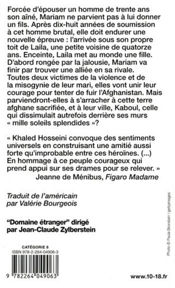 À Kaboul, Mariam endure un mariage contraint avec un homme violent. L'arrivée de la jeune Laila sous son toit est une épreuve de plus. Mais, entre ces femmes que tout oppose, la rivalité va bientôt faire place à une indéfectible amitié... Et à l'espoir d'une autre vie. Par l'auteur des Cerfs-Volants de Kaboul , un chant d'amour poignant pour l'Afghanistan, déchiré par la barbarie.