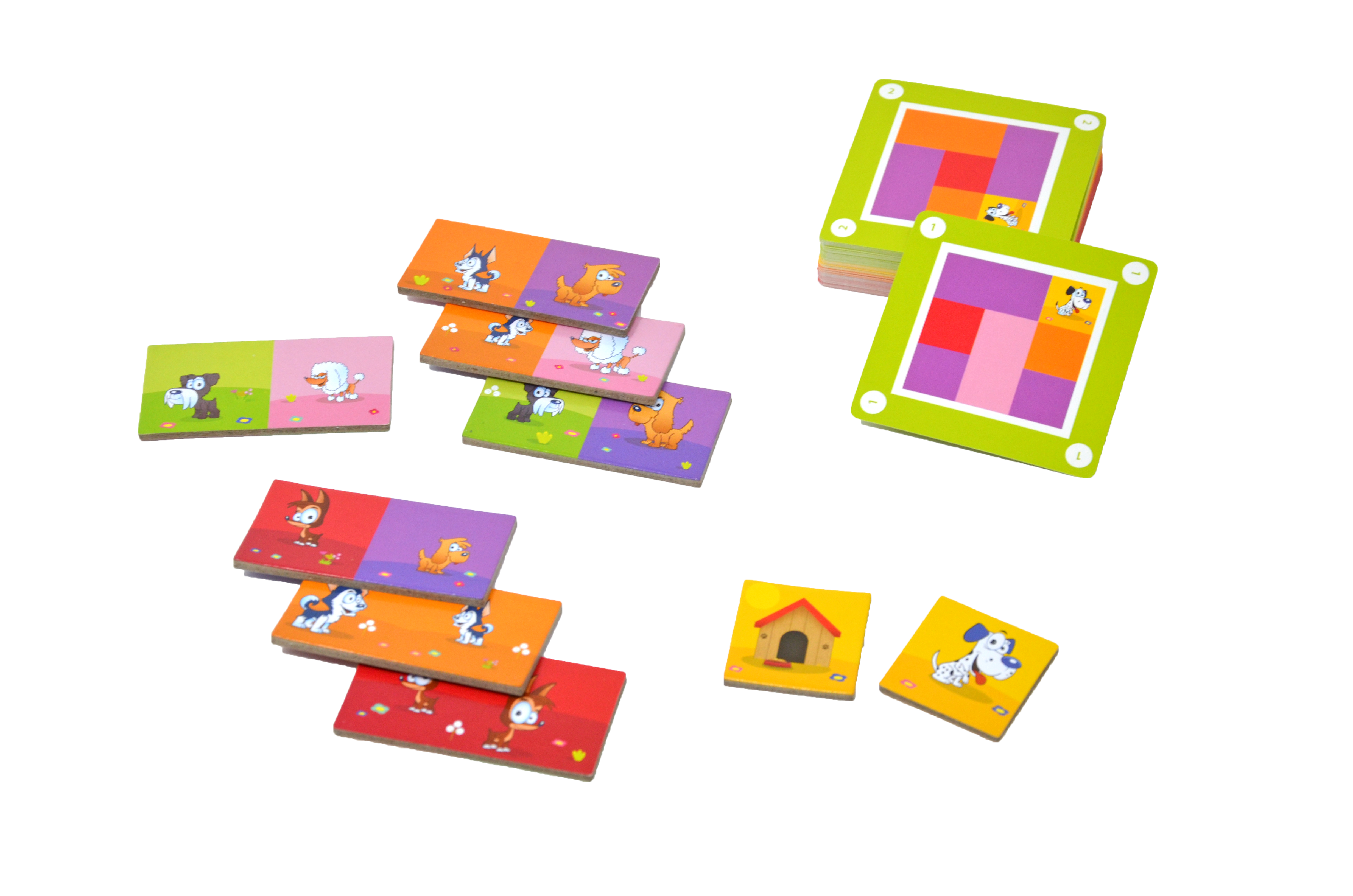 | La boîte contient | 60 cartes défi (avec solution au dos), 9 tuiles recto-verso (2 carrés, 7 rectangles) |