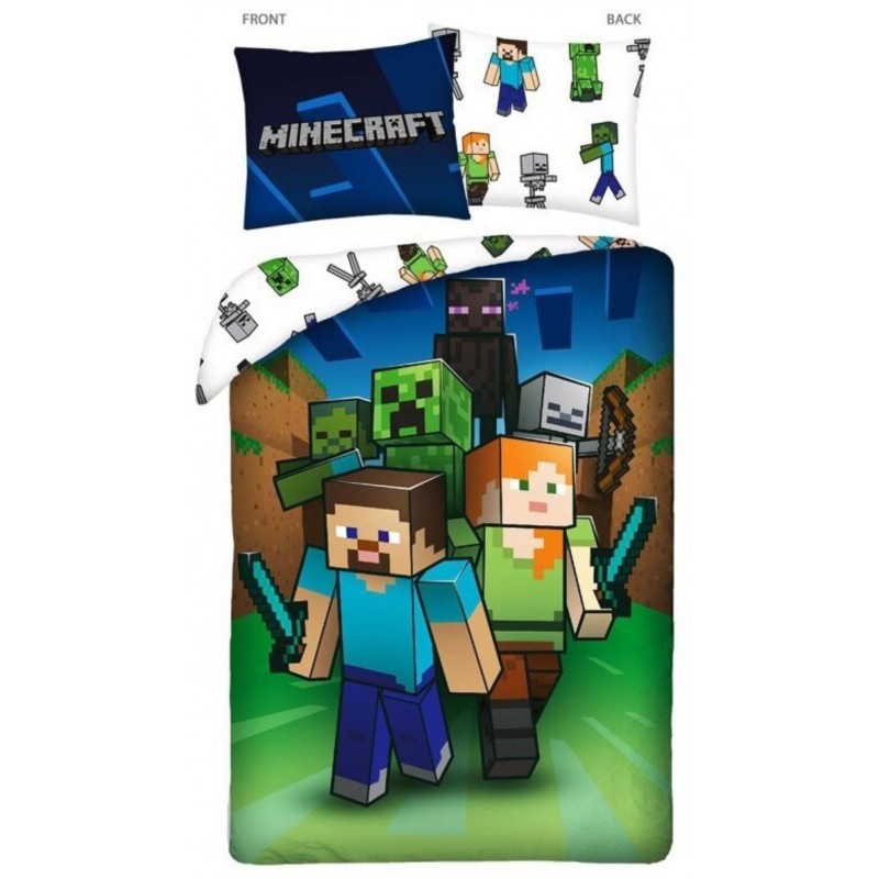 Minecraft - Parure de Lit Enfant Coton Gamer - Housse de Couette 140x200 cm Taie d'Oreiller