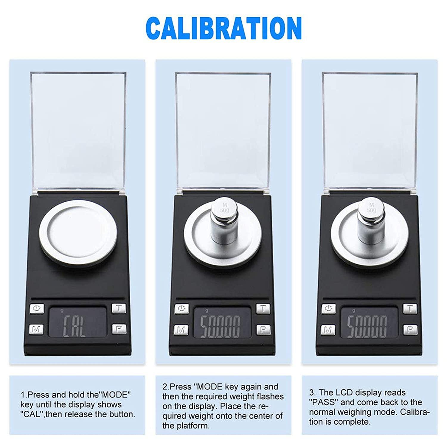 Avec poids d'étalonnage : Cette balance de poche est livrée avec un poids d'étalonnage de 50 g, une balance, une pince à épiler et 2 piles AAA, c'est-à-dire tout ce dont vous avez besoin. Veuillez calibrer la balance avant de l'utiliser.