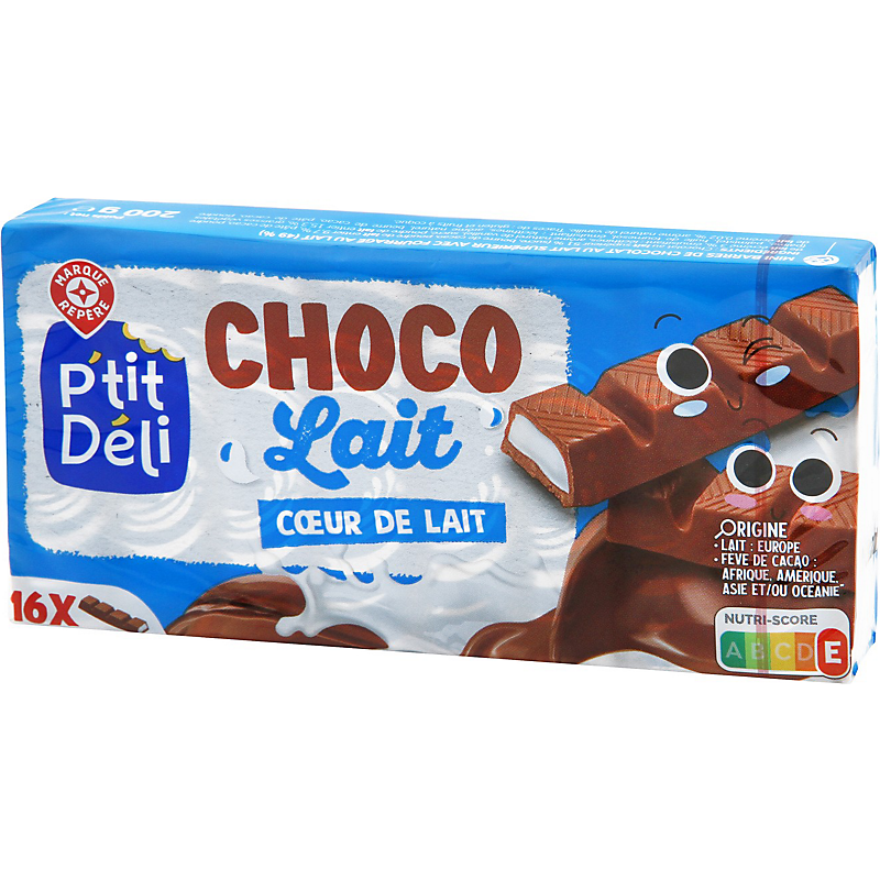 Mini-Barres Chocolatées Fourrées Au Lait x 16 - 200 g - P'TIT DELI