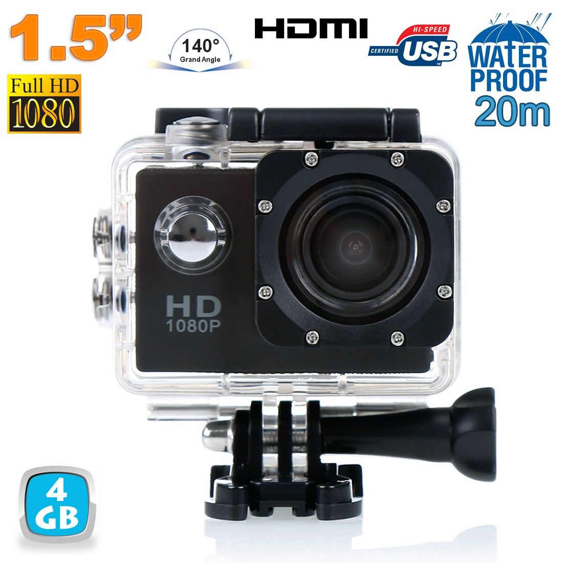 Mini Caméra Sport HD 1080P Étanche 30M Écran Photos Vidéo Angle 140° Noir 4 Go YONIS
