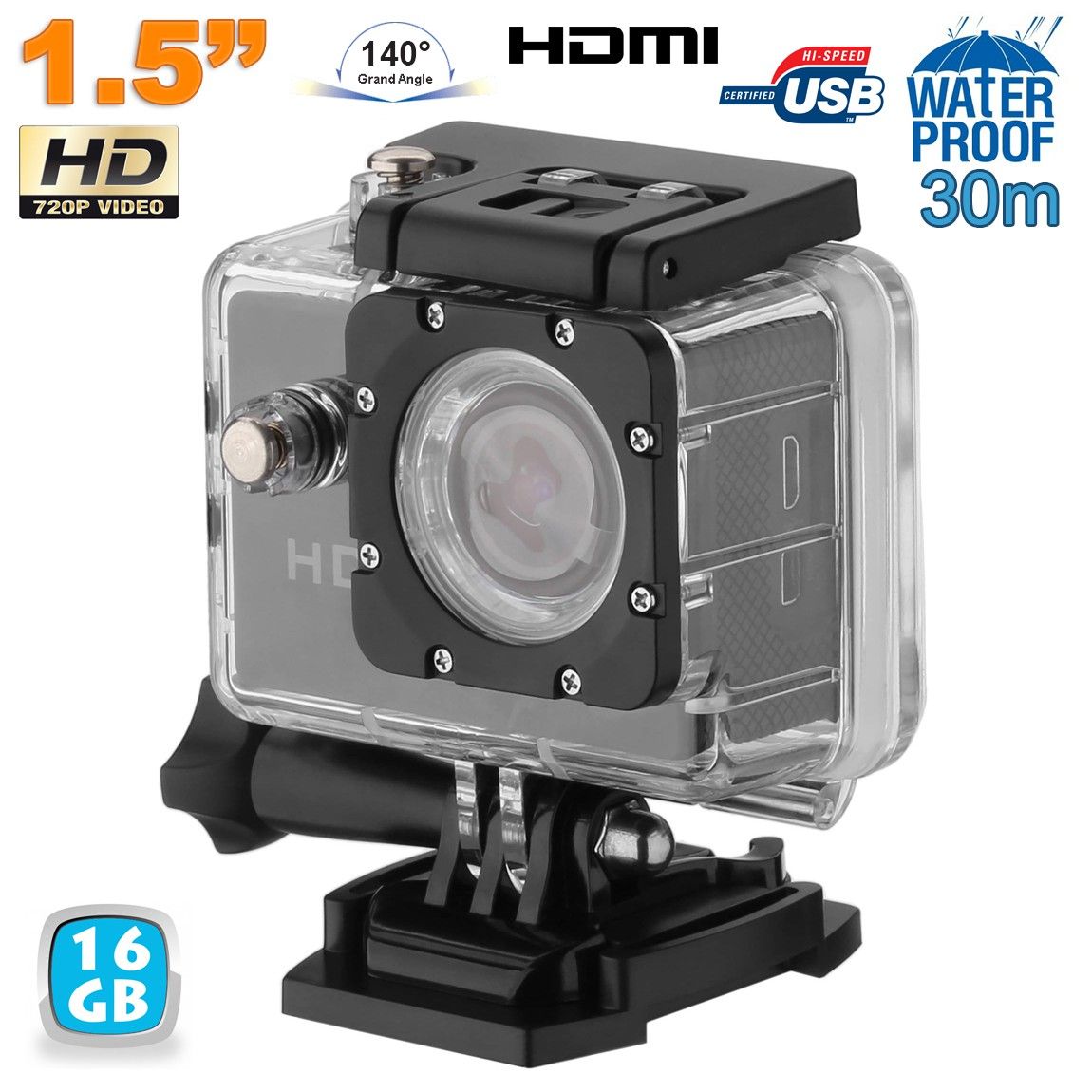 Mini Caméra Sport HD 720P Étanche 30M Écran 1.5' Photos Vidéo 140° Noir 16 Go YONIS