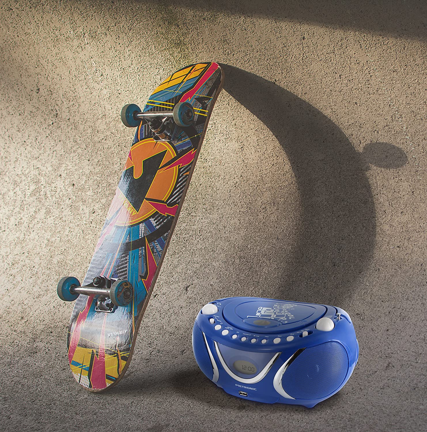 Metronic propose un design unique pour ses boombox, qui s’intègre aussi bien dans une chambre d’enfant que dans un salon ou encore dans une cuisine.La boombox Metronic est aussi mobile, grâce à sa poignée ergonomique et son fonctionnement sur pile (elle fonctionne aussi sur secteur), des atouts pour l’emmener partout !La boombox Metronic est compatible avec la quasi-totalité des disques disponibles sur le marché.Notre système audio vous permet d'écouter de la musique encodée en MP3 sur des CD, CD-R et CD-RW.Les CD-R sont enregistrables une fois et peuvent être lus sur n'importe quel lecteur de CD tandis que les CD-RW peuvent être réenregistrés plusieurs fois et lus sur la totalité des boombox Metronic .Faites-vous plaisir, écoutez vos musiques dans l’ordre que vous le souhaitez.Après avoir chargé vos chansons préférées via le lecteur CD ou la prise USB, tout ce qu'il vous reste à faire et de sélectionner l'un des modes, lecture normal, aléatoire, répétition, prog ou intro afin que les pistes soient lues dans des modes différents.Cette fonctionnalité de programmation de la lecture de CD MP3 vous permet d'écouter vos musiques préférées dans l'ordre que vous souhaitez avec un maximum de 99 musiques.Grace à l’ID3-Tag, nos boombox peuvent afficher le nom de l'artiste et le titre de la chanson jouée afin d'identifier facilement vos musiques.Des informations numériques et textuelles apparaissent pour pouvoir facilement visualiser le nom de l'artiste et le titre de la chanson.La compatibilité ID3-Tag vous permet une identification et une recherche facile des nombreuses pistes sur votre CD MP3.