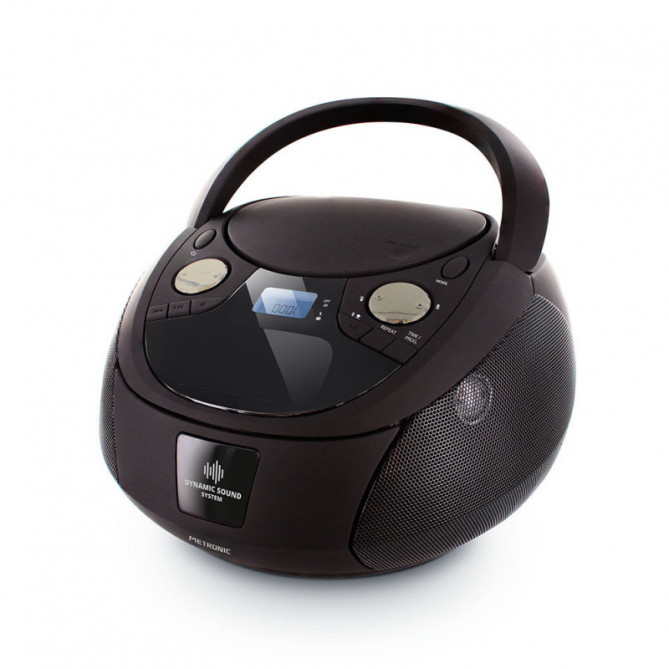 Metronic propose un design unique pour ses boombox, qui s’intègre aussi bien dans une chambre que dans un salon ou encore dans une cuisine. Vous adorerez la finition « peau de pêche » douce au toucher et sublimée par les boutons chromés En plus de son lecteur CD, profitez de la connectivité Bluetooth mais aussi d'un port USB ainsi que d’une entrée audio jack 3,5 mm pour écouter tous vos sons favoris La boombox Metronic vous permet d'écouter de la musique encodée en MP3 sur des CD, CD-R et CD-RW Vous pourrez bénéficier des mêmes fonctions qu’un réveil : affichage de l’heure, alarme, mise en veille automatique (sleep) La boombox Metronic est aussi mobile, grâce à sa poignée ergonomique et son fonctionnement sur piles (elle fonctionne aussi sur secteur), des atouts pour l’emmener partout
