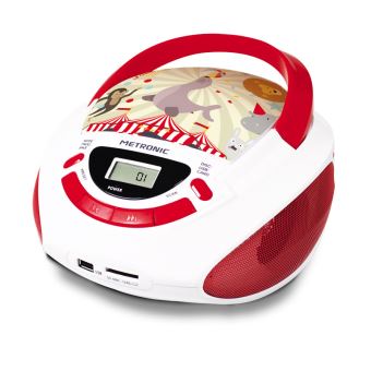 mini chaine hifi Radio Lecteur CD USB SD AUX-IN Enfant Circus rouge blanc