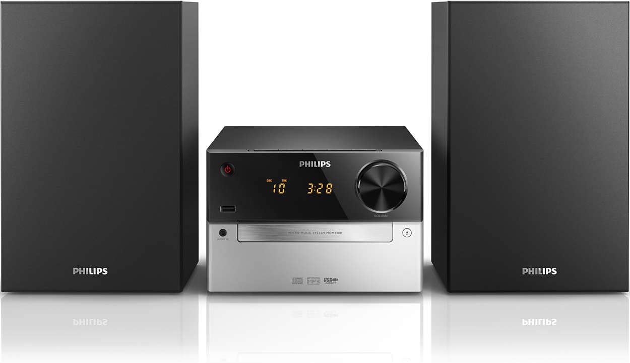 Relaxez-vous en musique L'obsession du son Écoutez vos morceaux préférés sur ce système audio Philips compact tout-en-un, doté d'un port USB, d'une entrée audio et d'un lecteur CD. Profitez d'un son puissant avec les enceintes Bass Reflex ainsi que du système Digital Sound Controls pour optimiser vos réglages audio. Points forts Un son exceptionnel Le système d'enceintes Bass Reflex diffuse des basses profondes et puissantes Puissance de sortie maximale 15 W Contrôle numérique du son Profitez de votre musique, en provenance de différentes sources Lecture de CD-MP3, CD et CD-R/RW USB direct pour lire la musique au format MP3 en toute simplicité Entrée audio pour écouter la musique de vos appareils portables Facile à utiliser Changeur de CD motorisé facilitant le chargement Tuner numérique avec présélections pour un confort optimal