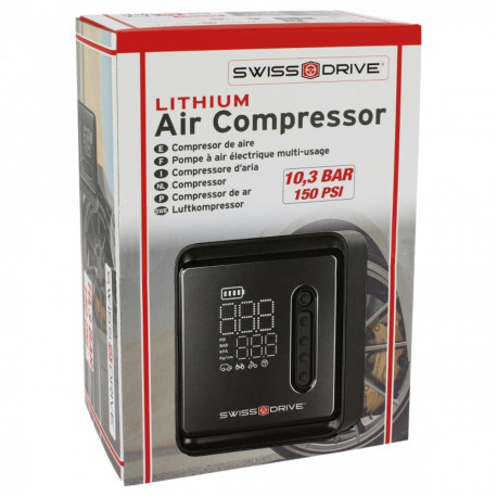 La pompe à air Swiss DRIVE rechargeable assure un gonflage rapide et précis grâce à son écran digital. Avec 5 modes de gonflage, batterie USB rechargeable et fonction power bank, elle est idéale pour tous vos besoins. Adaptateurs inclus pour une utilisation polyvalente.