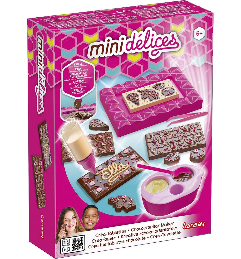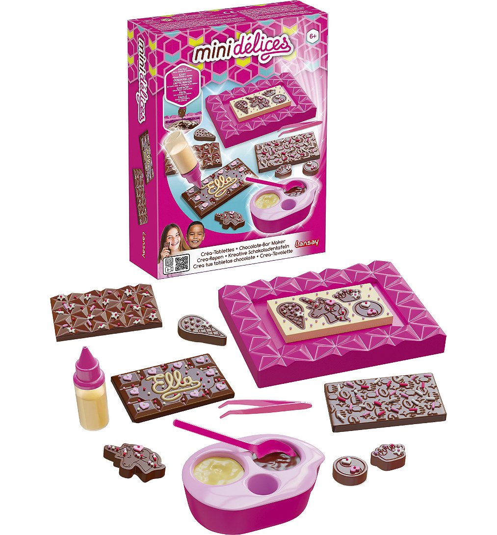 Avec l’Atelier Créa-Tablettes, crée facilement différentes tablettes de chocolat ! Tu pourras également créer des tablettes personnalisées en y ajoutant des inserts avec du chocolat contrastant, et même écrire ton prénom sur des tablettes grâce au stylo à chocolat ! Déguste tes créations ou offre-les à tes amis et à ta famille dans les emballages inclus !