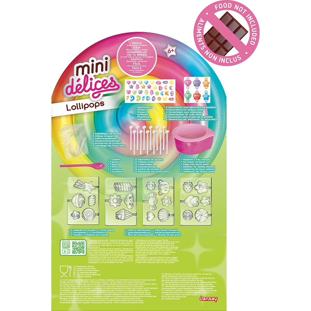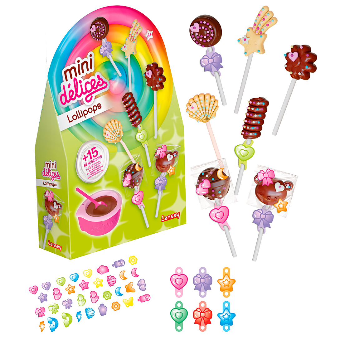 Découvre le coffret Lollipops pour créer facilement de jolies petites sucettes ! Fais fondre des carrés de chocolat grâce au récipient à eau chaude, remplis tes moules de chocolat fondu à l’aide de la cuillère et mets-les au frigo ! Tu peux ensuite sublimer tes réalisations avec les décorations sucrées de ton choix (non incluses) ! Avec les emballages et stickers inclus, tu peux personnaliser tes sucettes pour les offrir à qui tu le souhaites !