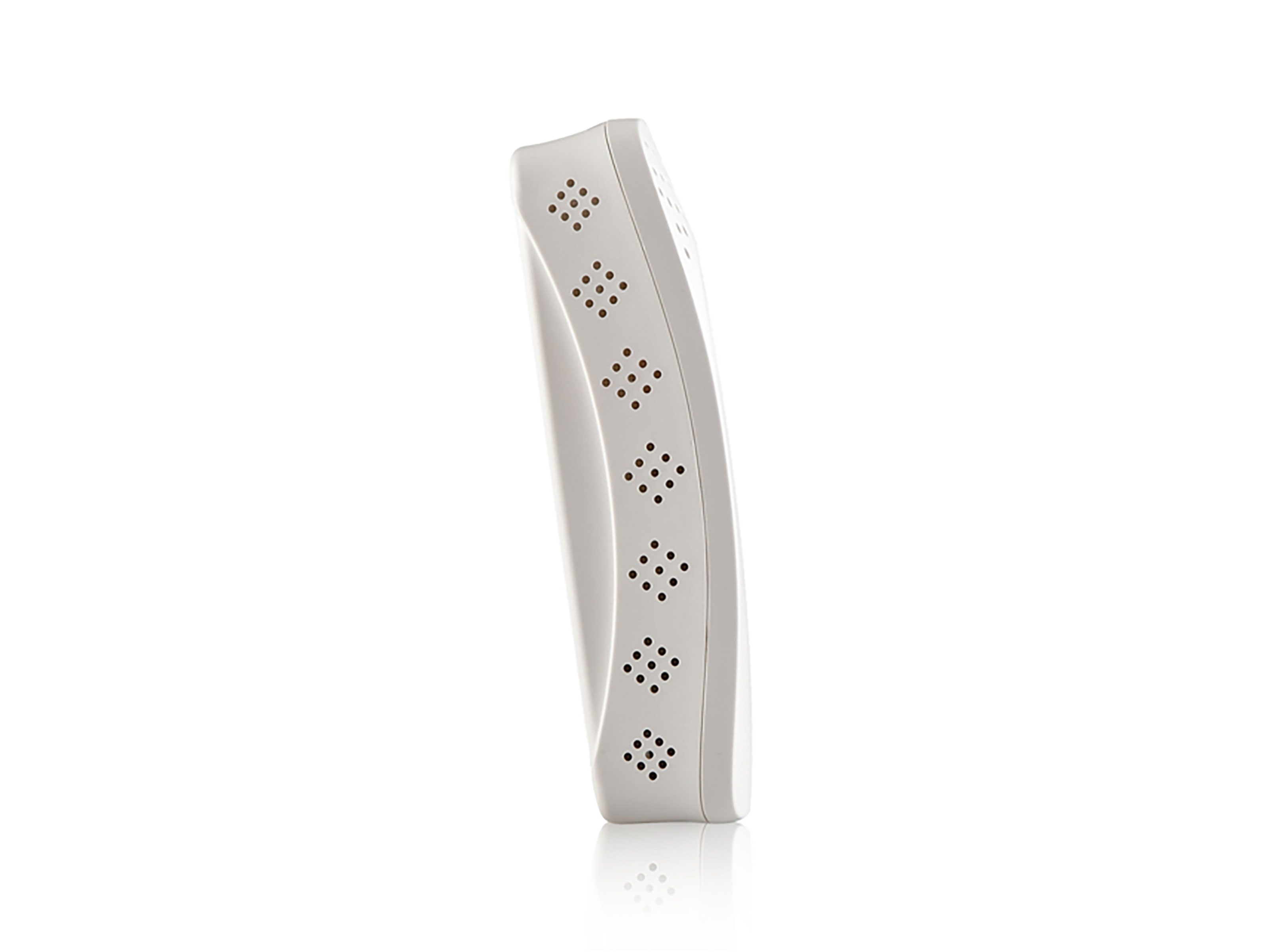 Son design moderne et compact, en ABS blanc, allie élégance et efficacité. Grâce à ses dimensions (LxlxH: 16,5 x 10,5 x 4,2 cm) et à sa légèreté (0,4 kg), il est idéal pour les petites pièces jusqu'à 5m2, comme les placards, les salles de bain ou les garde-manger.
