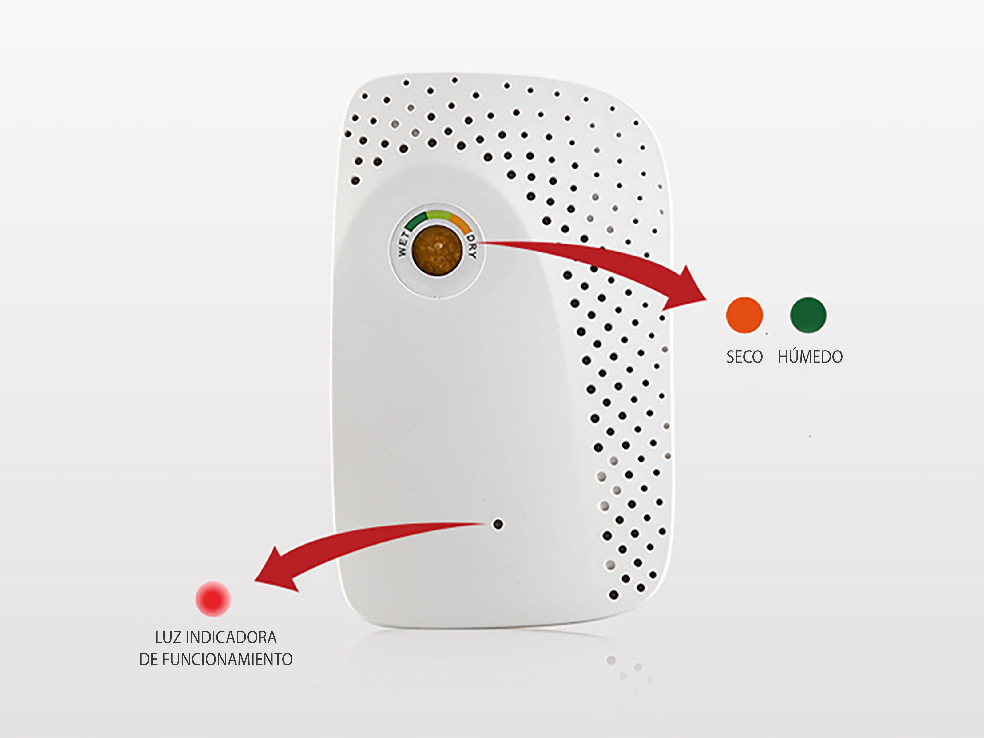Le DRYOS MINI est un déshumidificateur avec contrôle de l'humidité qui fonctionne sans compresseur ni gaz, il est donc totalement silencieux. De faible consommation, il fonctionne grâce au gel de silice présent à l'intérieur et absorbe l'humidité, totalement indépendant des sources d'énergie externes.